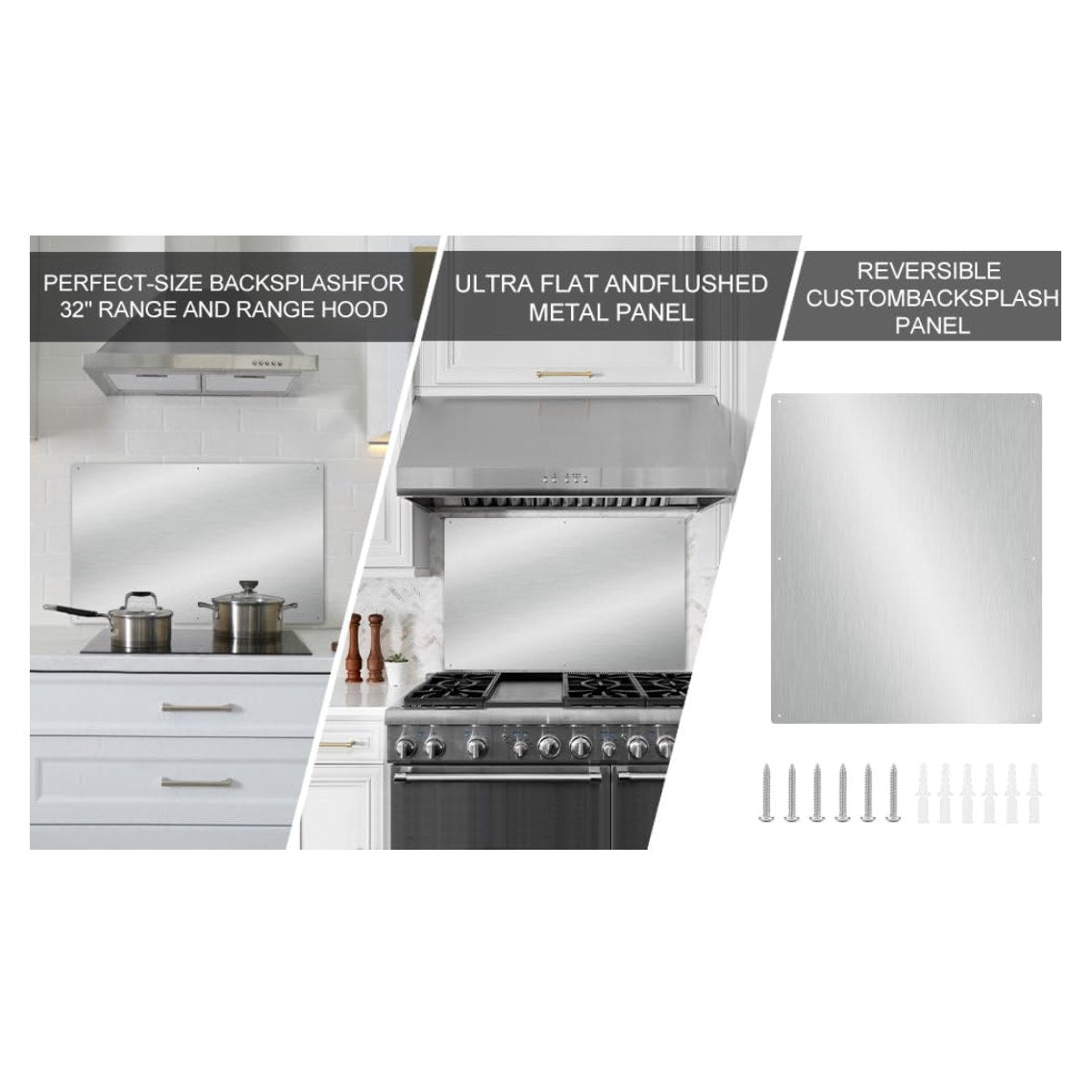 32" x 30" Backsplash Range Hoods Stainless Steel Panel Splatter Guard Stovetop