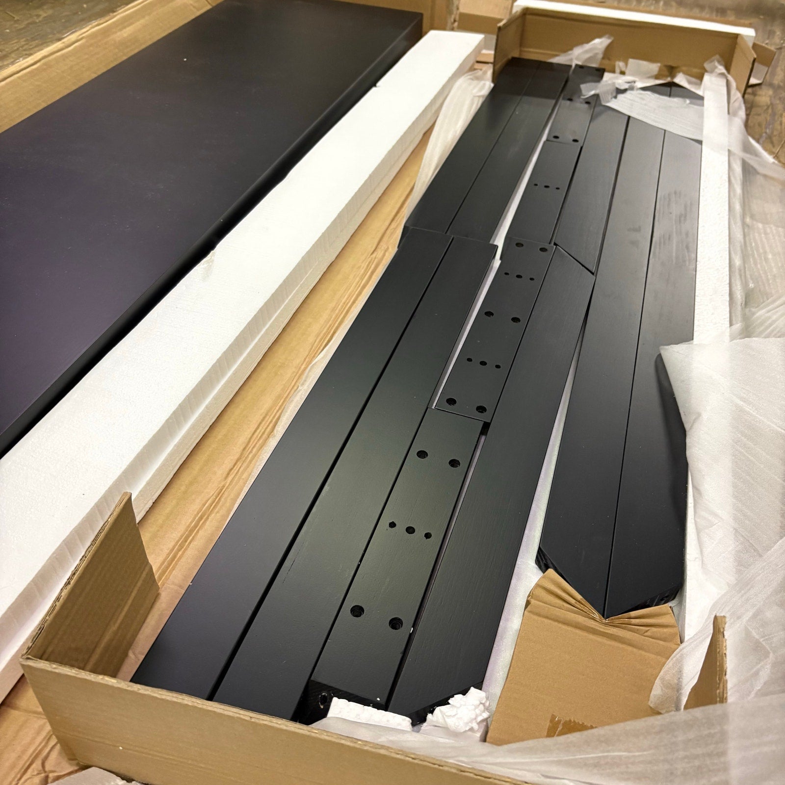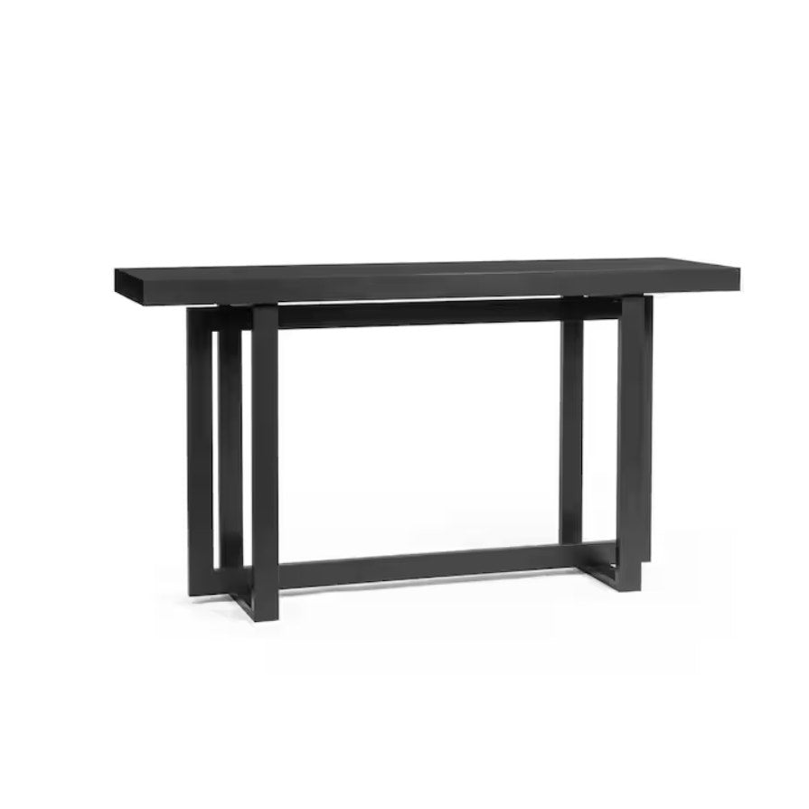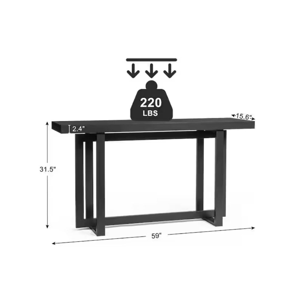 59" Black Rectangle Solid Wood Console Table with Geometric Base for Entryway