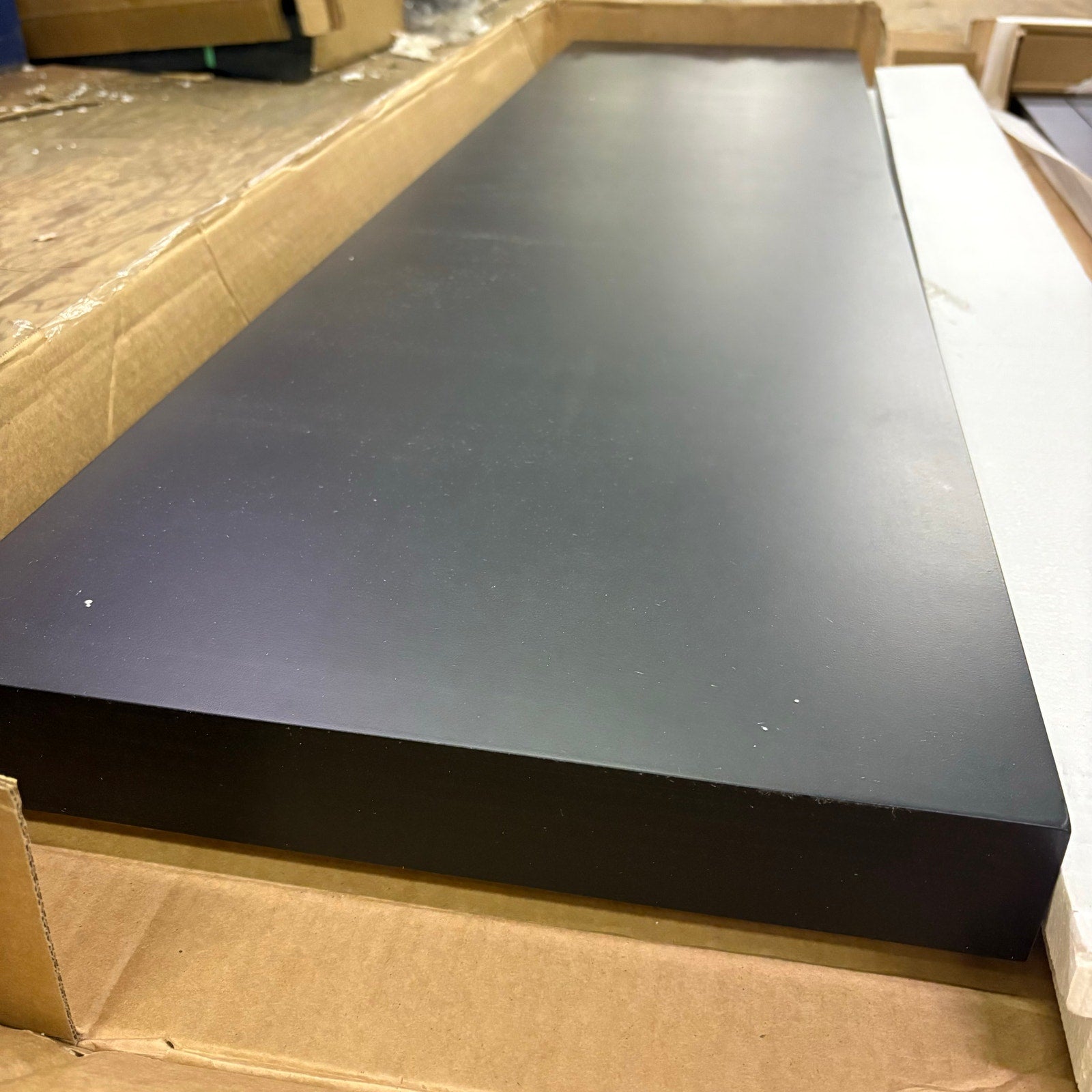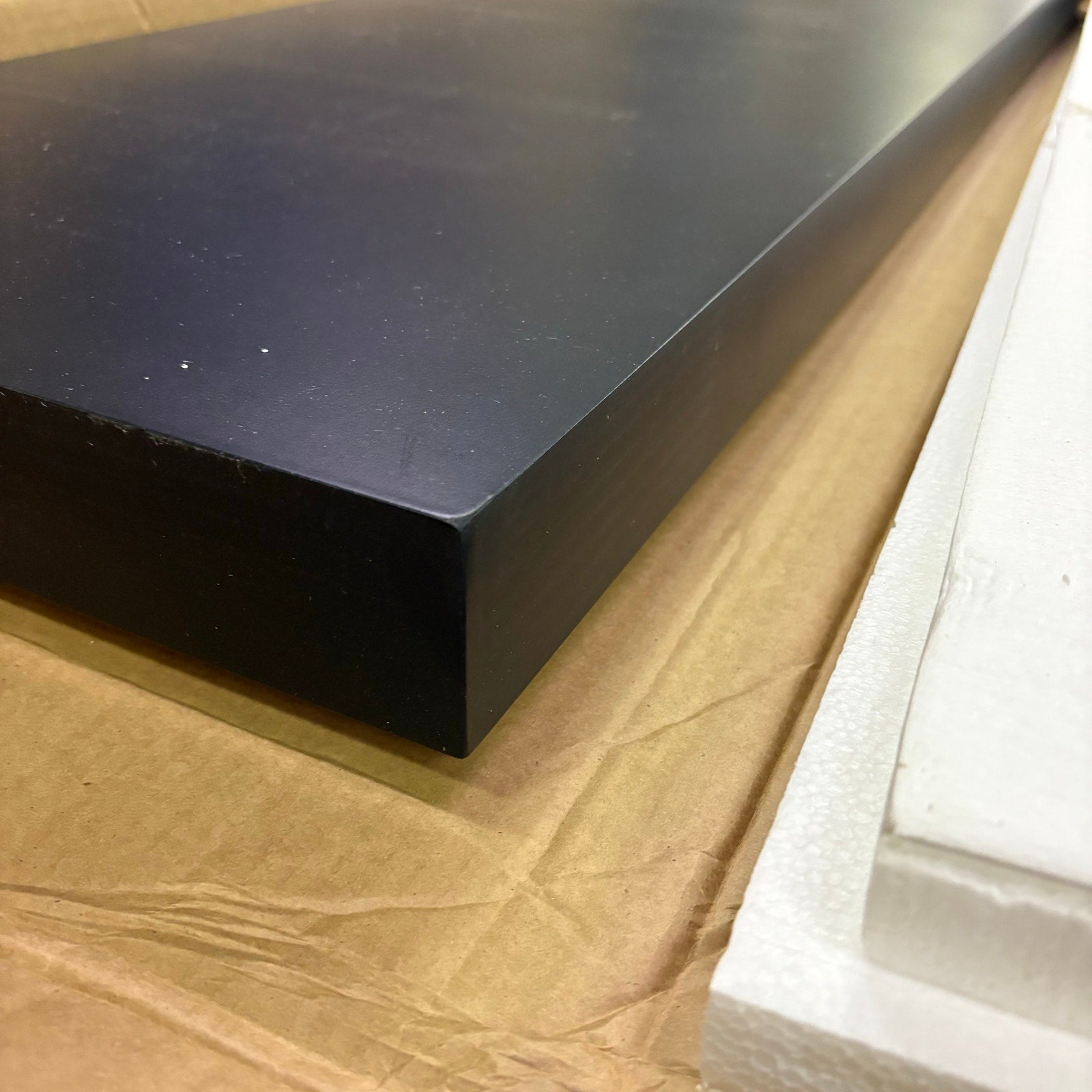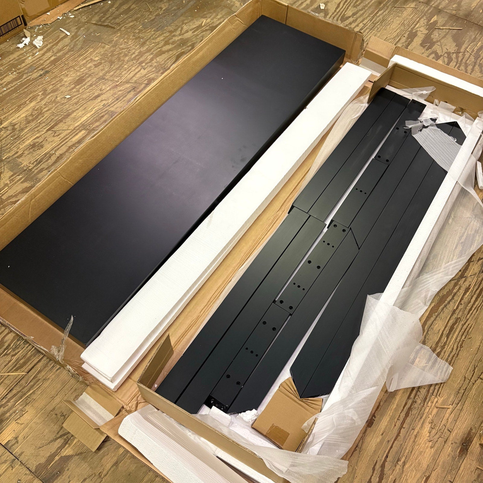 59" Black Rectangle Solid Wood Console Table with Geometric Base for Entryway