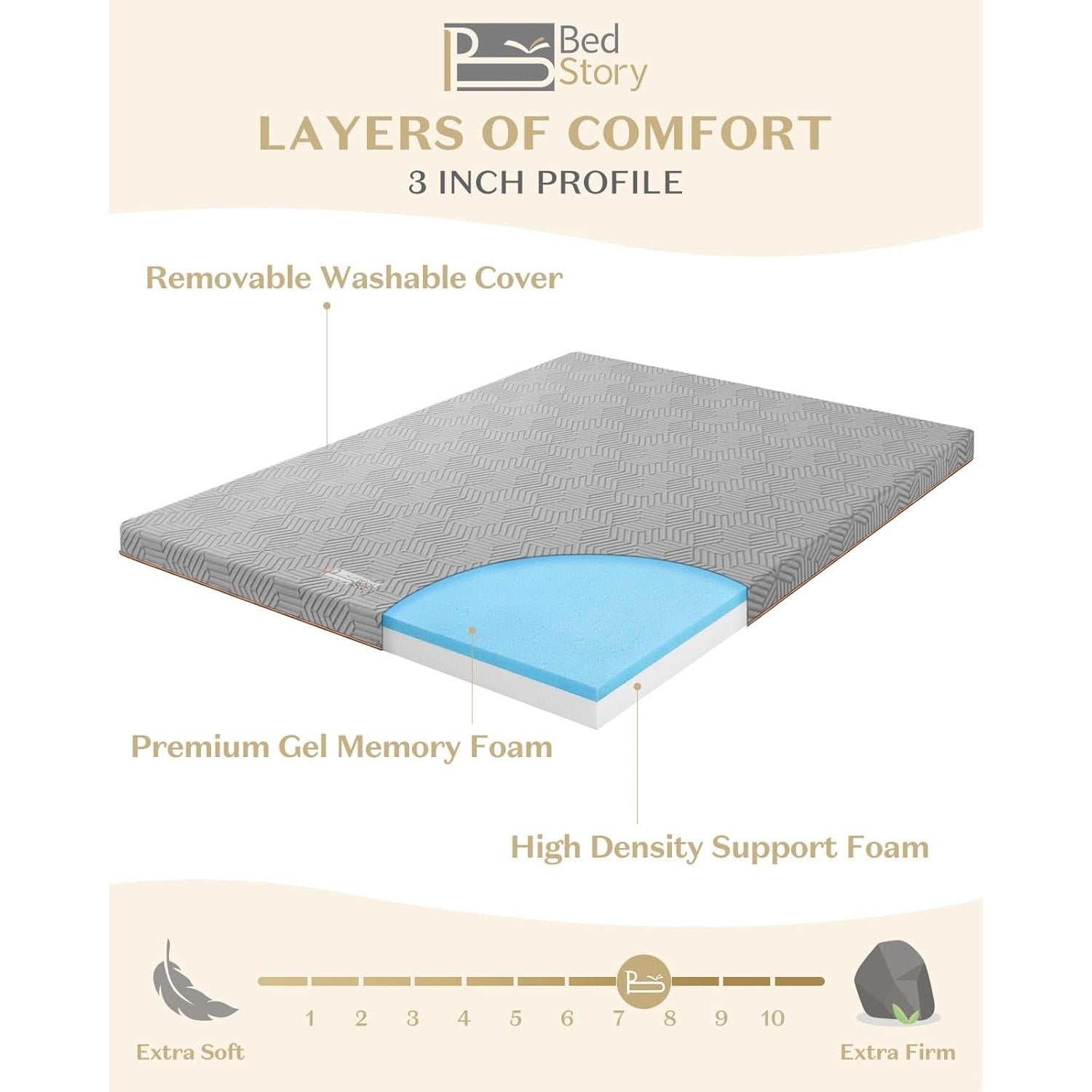BedStory Firm Mattress Topper (Full) 3in Memory Foam; Removable Cover - Gray