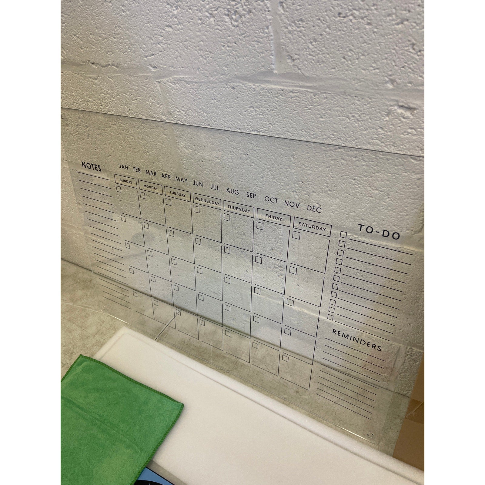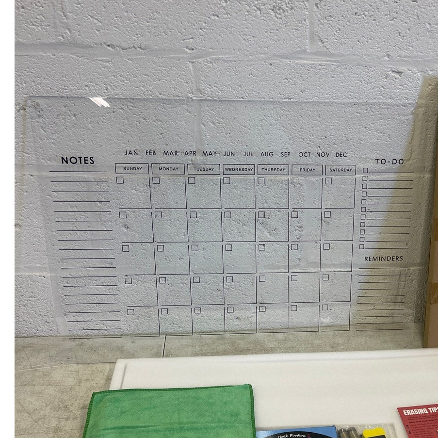 Guardmate Monthly Calendar Acrylic Dry-Erase Board 28" x 20" Wall-Mount &Markers