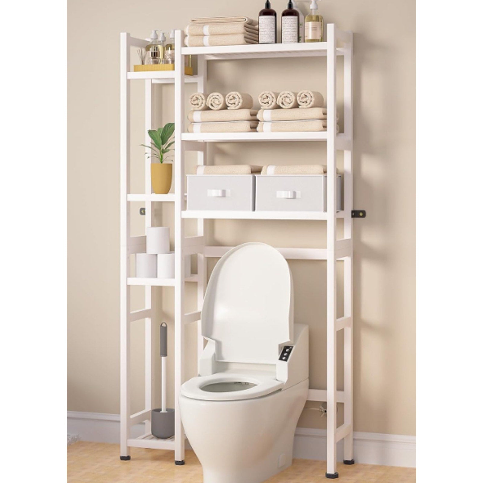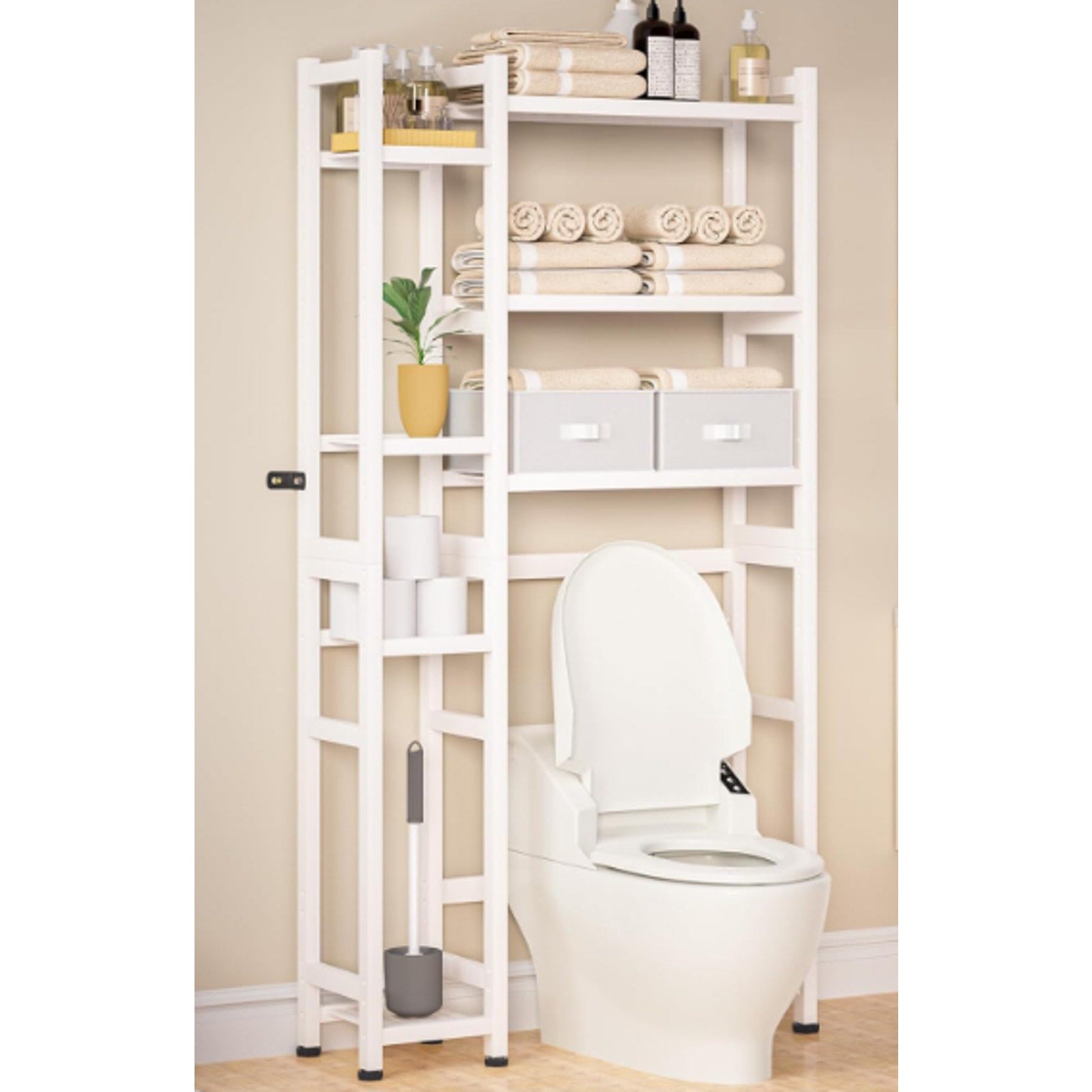 Homde Over The Toilet Storage w Basket & Drawer, Bamboo Bathroom Organizer White