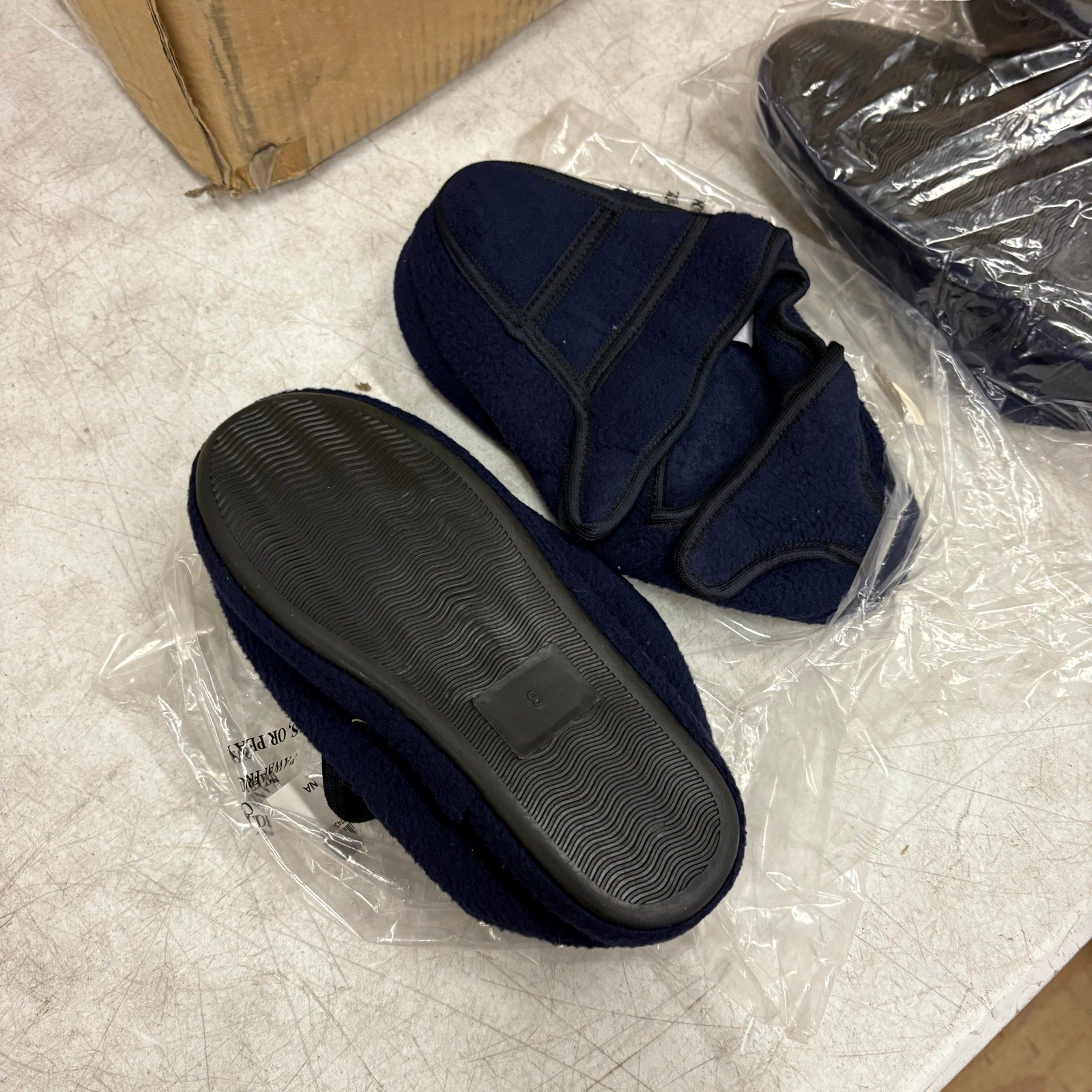 LOT-OF-24 Men's Adjustable Strap Slippers SMALL, Memory Foam, Rubber Bottom Blue