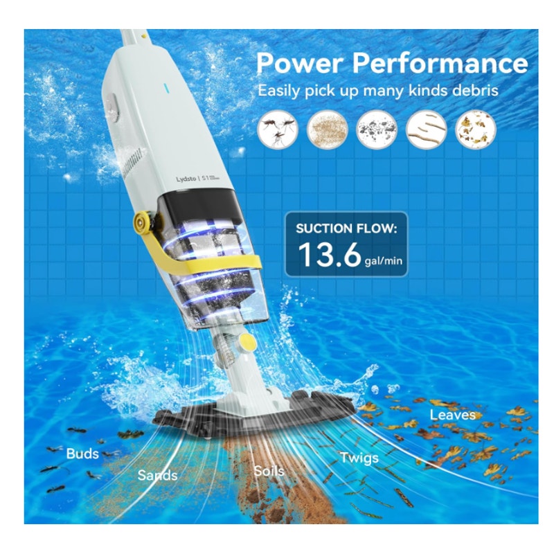 Lydsto Handheld Pool Vacuum w Telescopic Pole, Rechargeable, Strong Suction