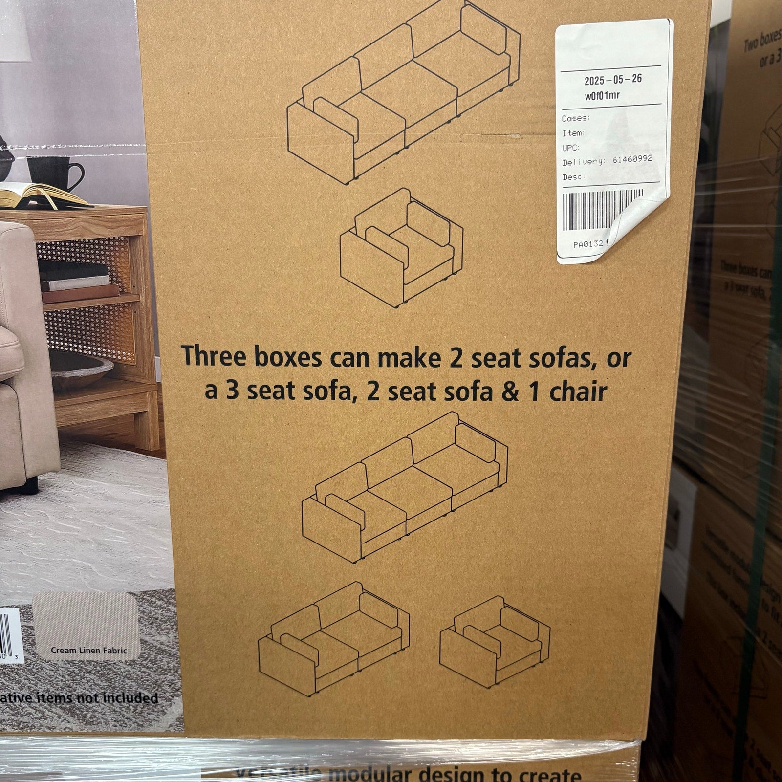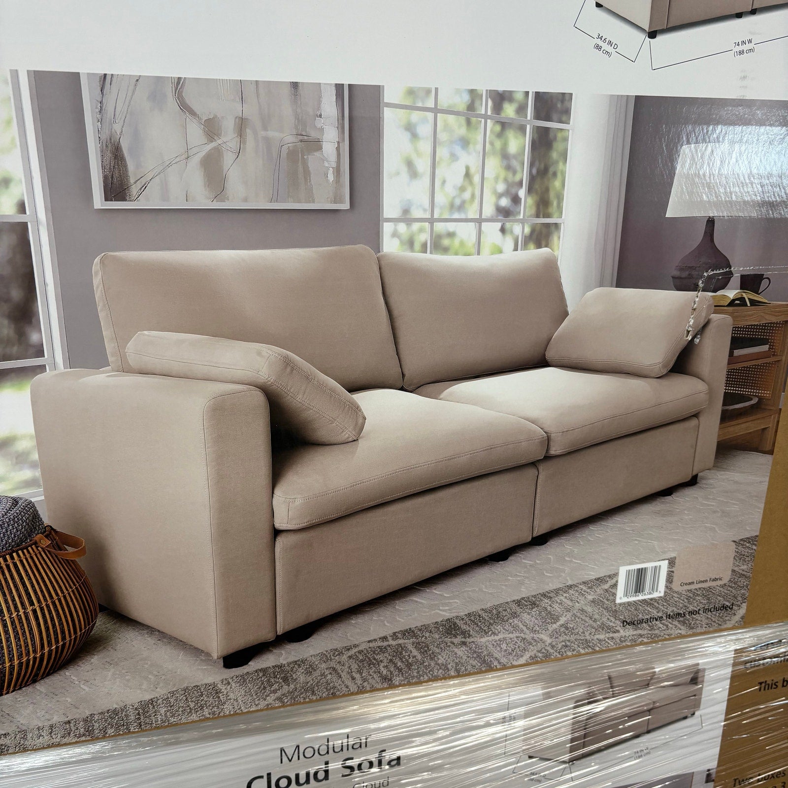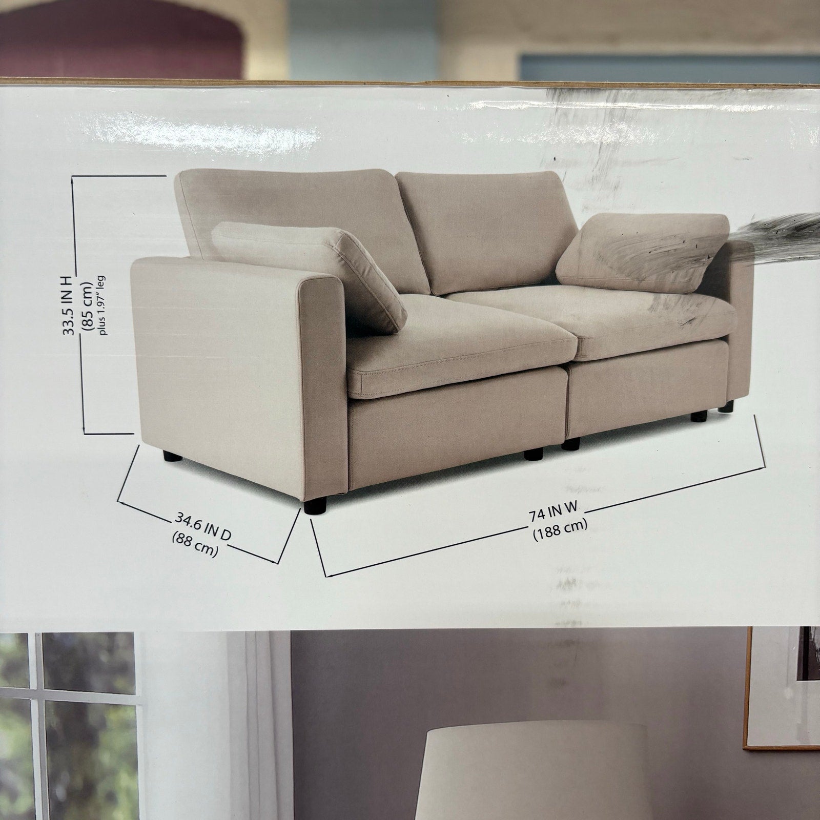 Mainstays 74" Modular 2-Seater Upholstered Sofa Chatham Cloud, w Pillows - Cream