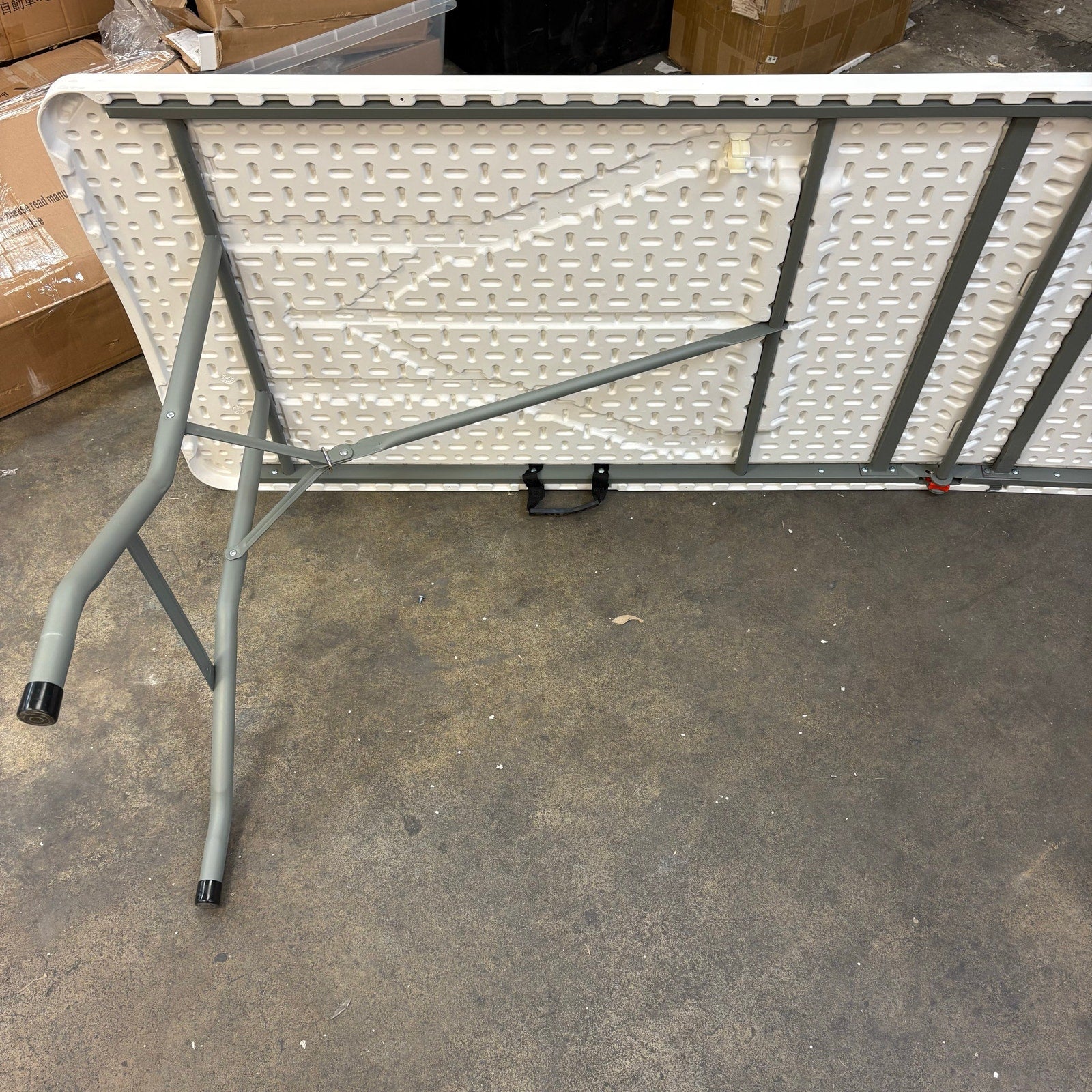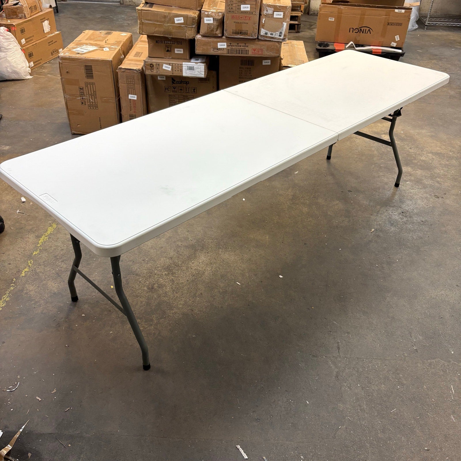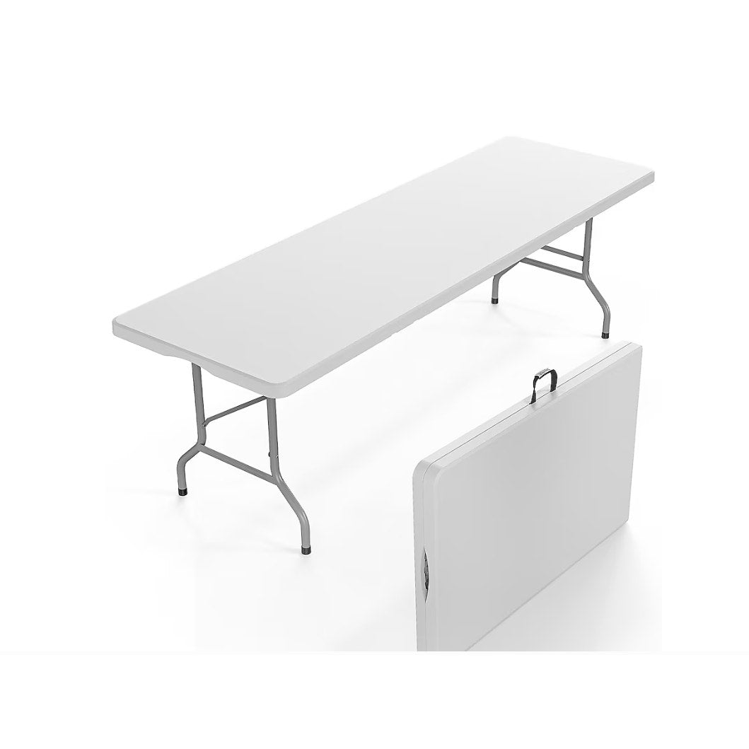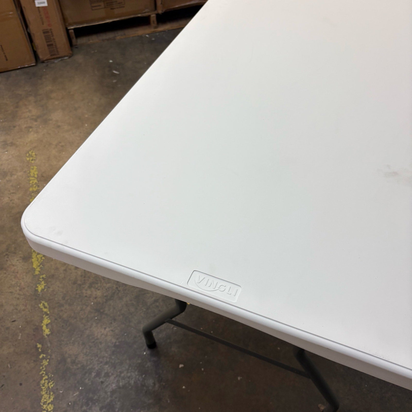 VINGLI 8' White Rectangular Plastic Folding Table Carrying Handle Indoor Outdoor