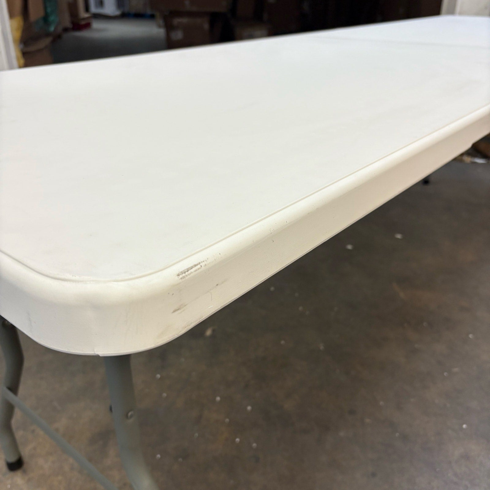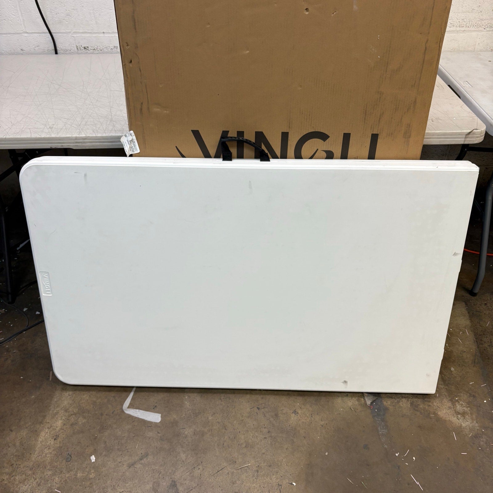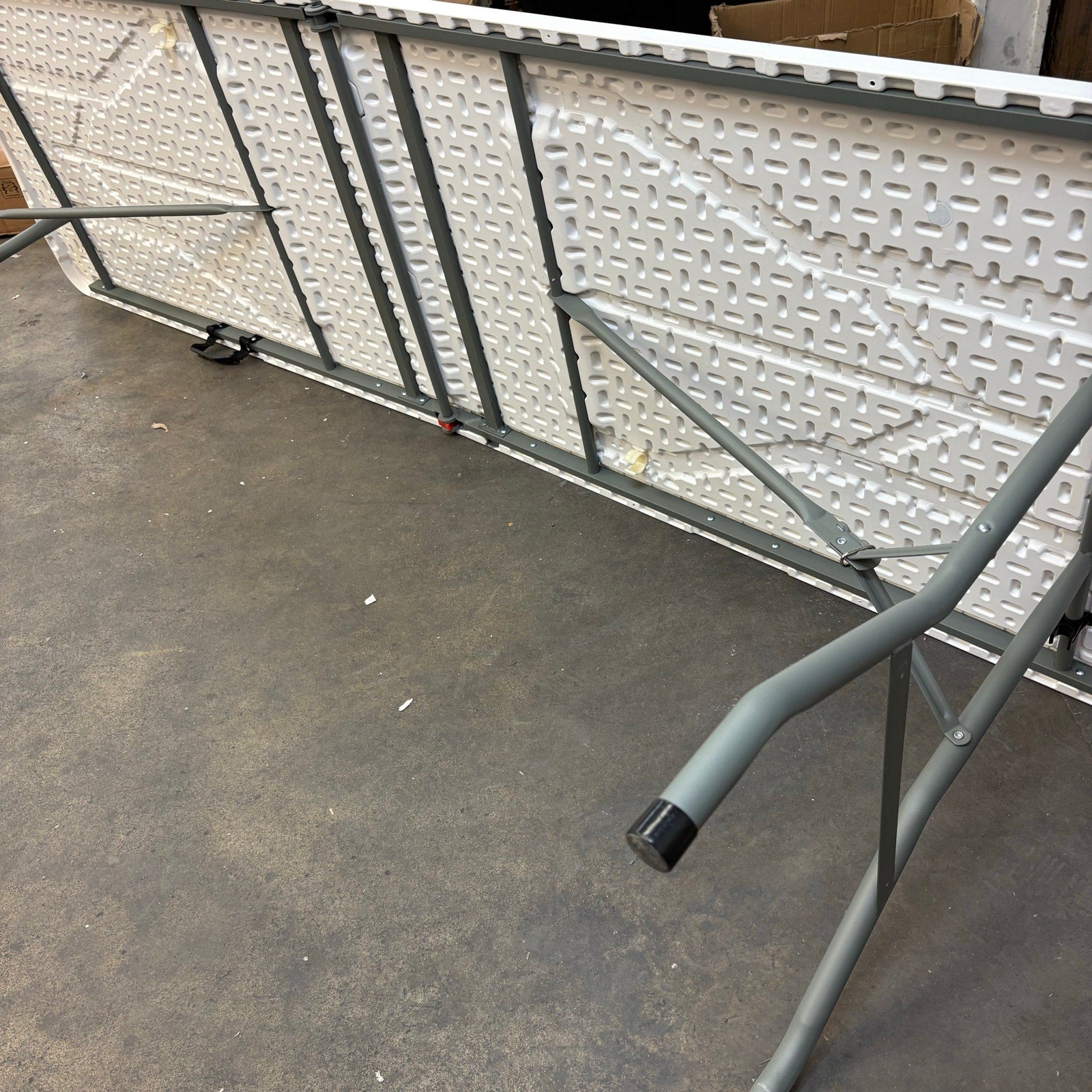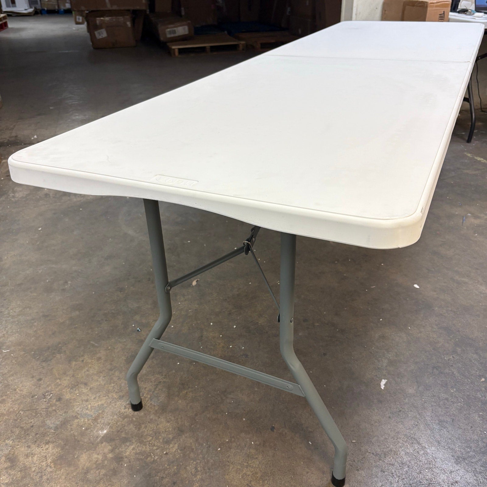 VINGLI 8' White Rectangular Plastic Folding Table Carrying Handle Indoor Outdoor