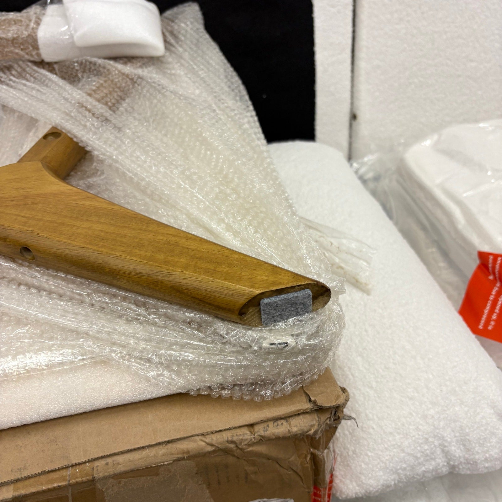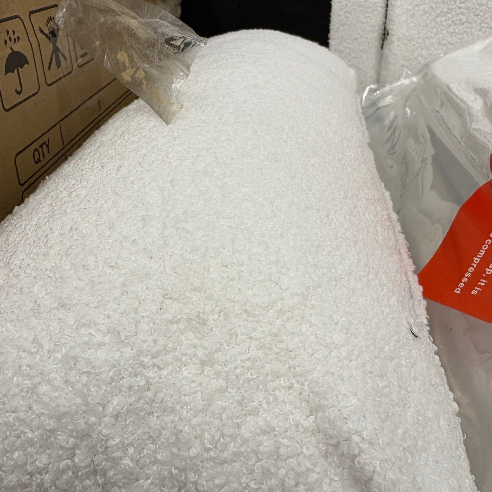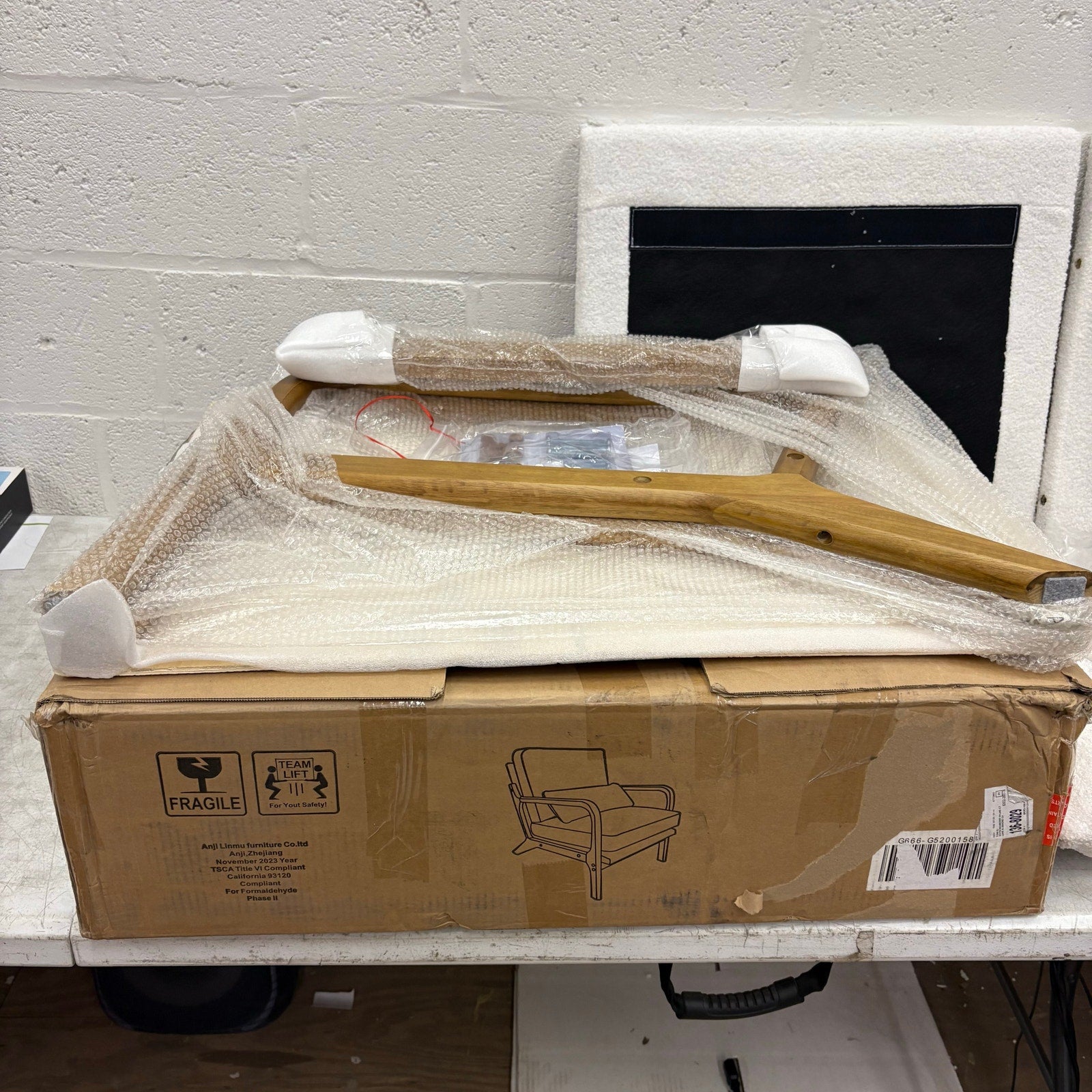 VINGLI Modern Accent Chair Brown Rubber Wood Frame & Lumbar Pillow - Fuzzy White
