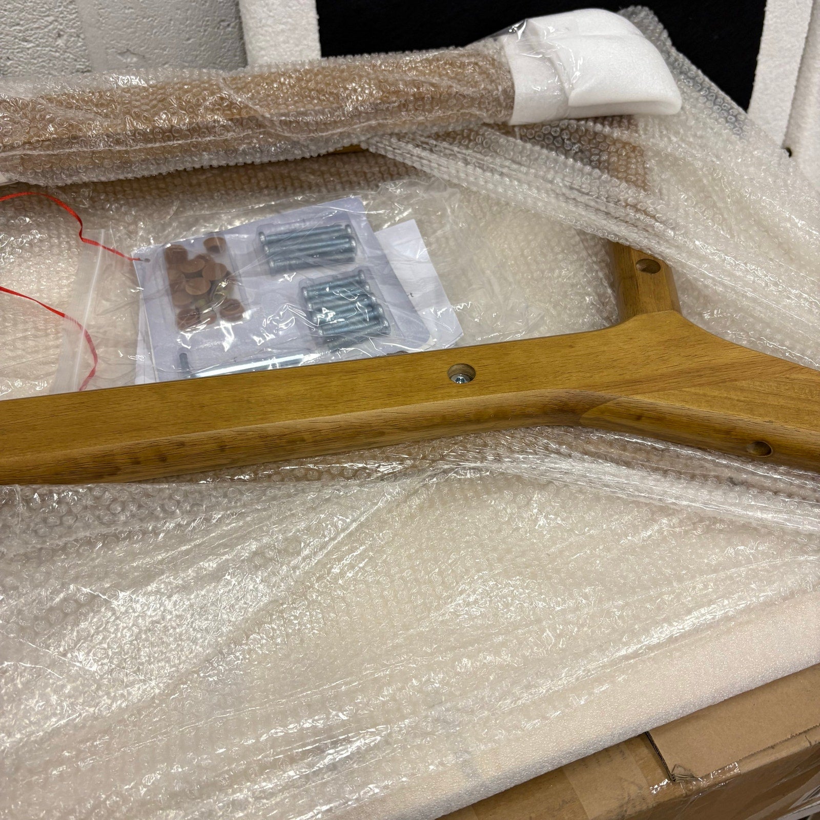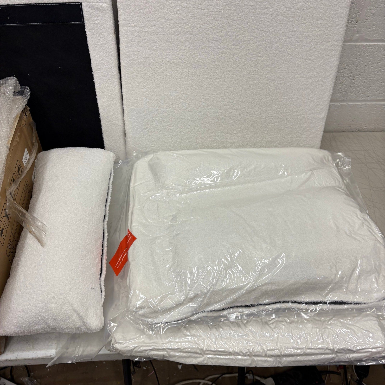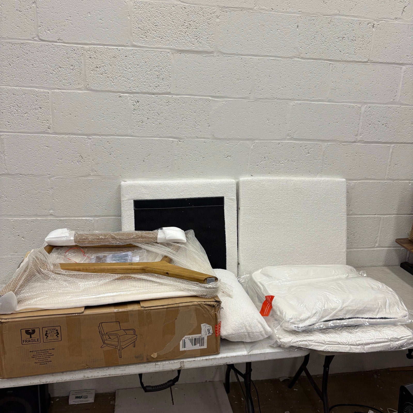 VINGLI Modern Accent Chair Brown Rubber Wood Frame & Lumbar Pillow - Fuzzy White