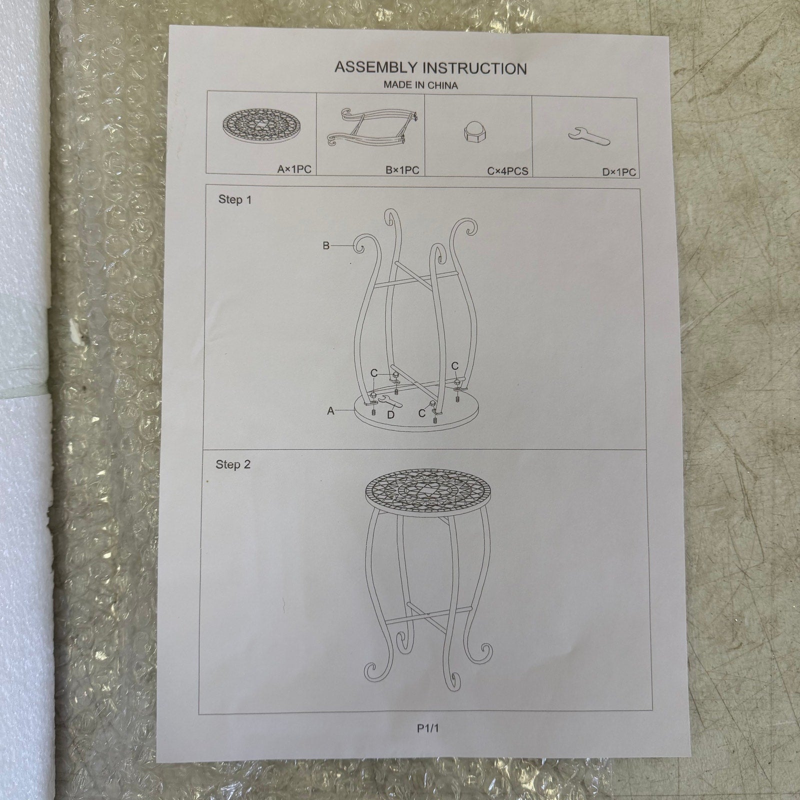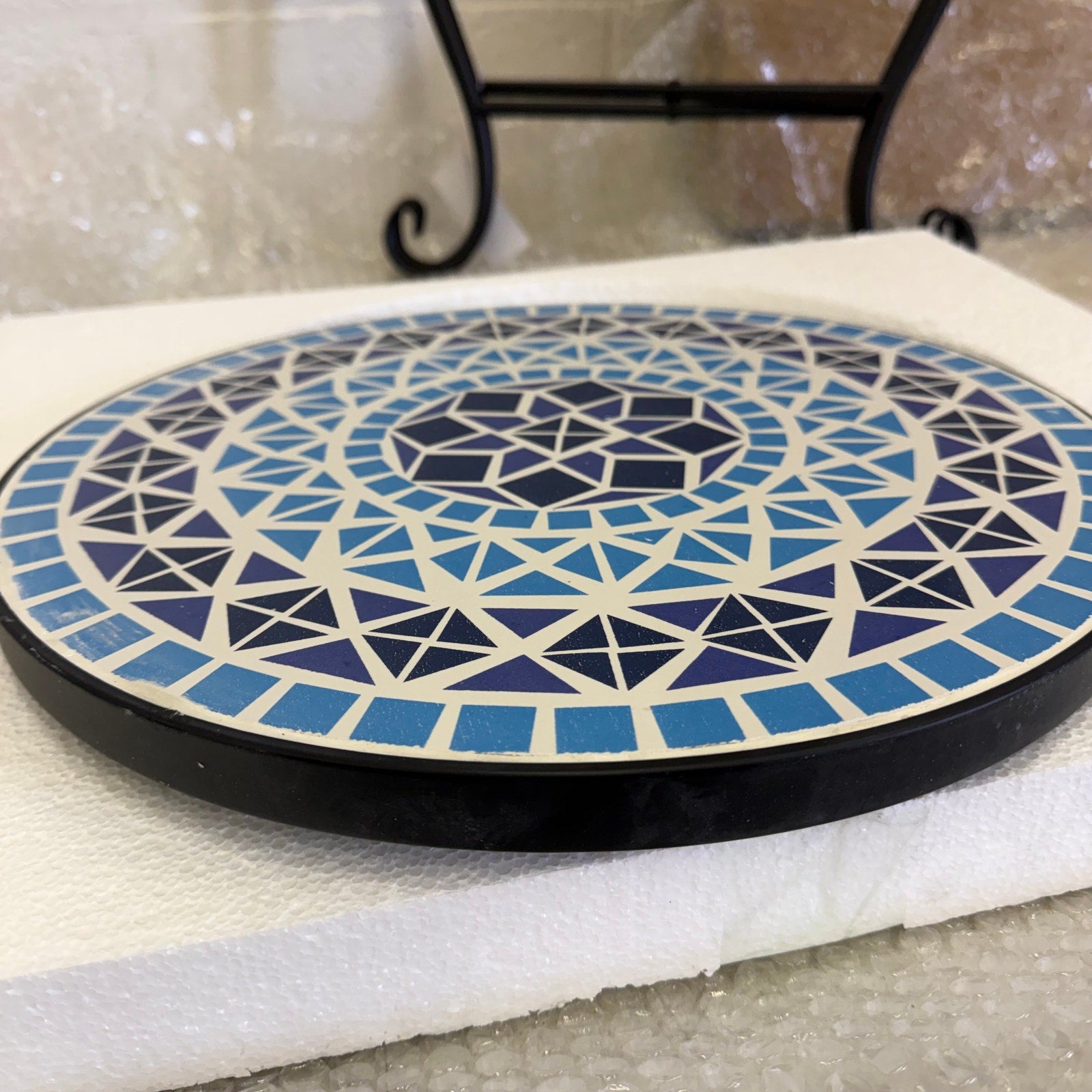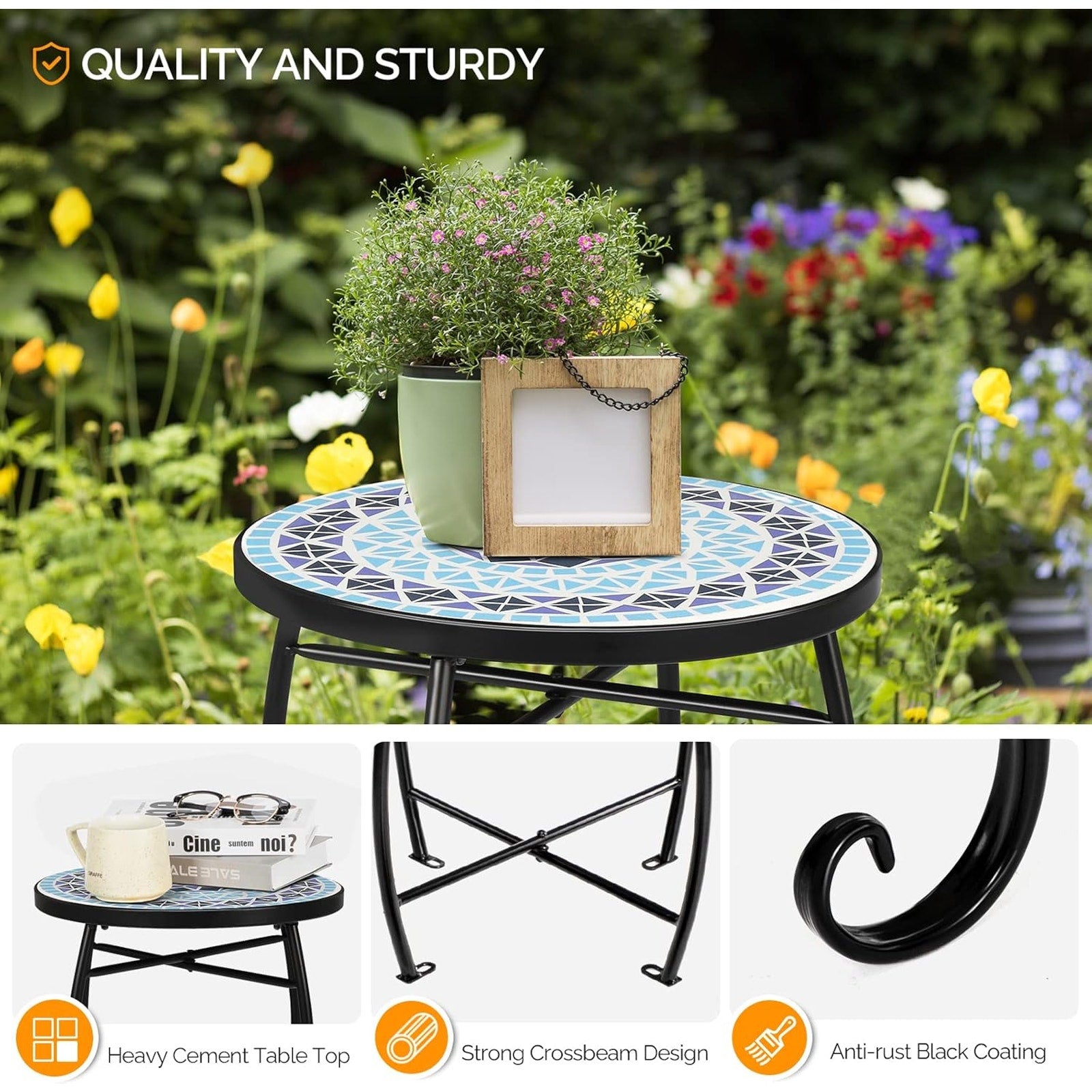 VINGLI Mosaic Metal Accent Table, 14" Round Side Table / Plant Stand