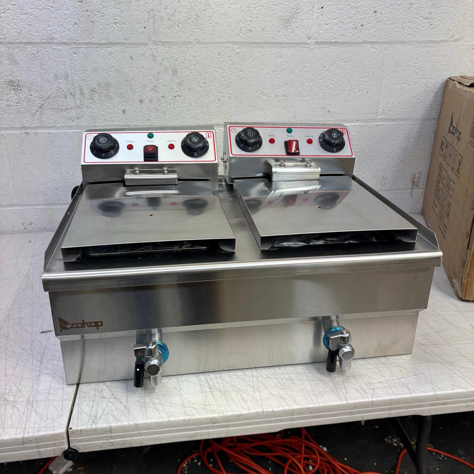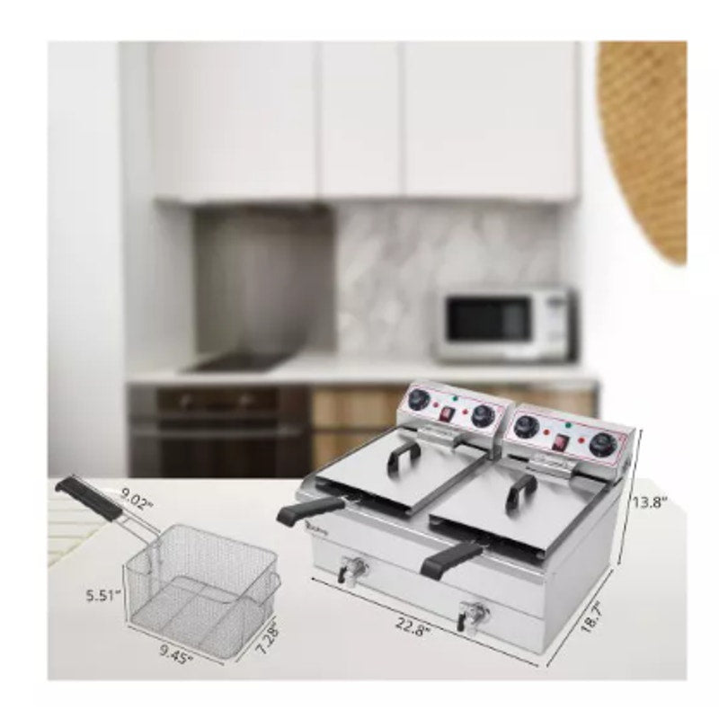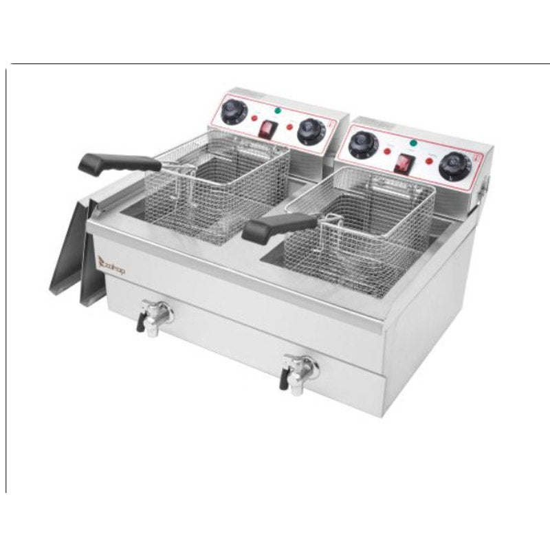 Zokop Deep Fryer 16.9 qt. Stainless Steel Single Tank w Faucet 2 Frying Sections
