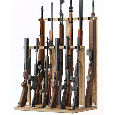 Gun Rack Wooden Rifle Rack Stand Freestanding Weapon Holder up to 12 Long Guns