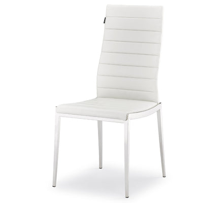 Set-of-4 Tryton Dining Chairs White Leather Stainless Steel Legs, Missing Hardware