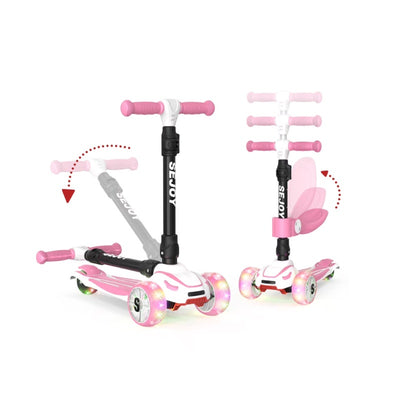 Sejoy Kids Kick Scooter 3-Wheel Light Up Foldable, Adjustable Seat - Pink