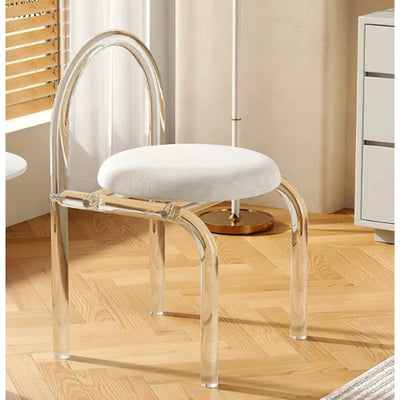 Cenozo Modern Minimalist Vanity Chair Clear Acrylic w/ Velvet Seat Cushion Cream