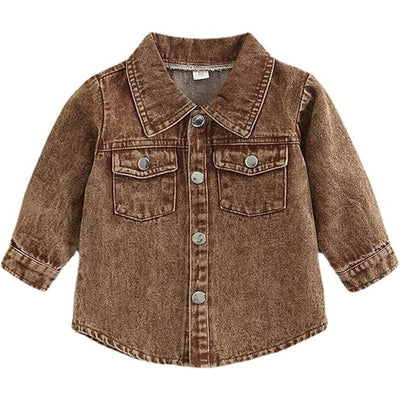 Toddler Boy Denim Button Down Shirt (Size 12-18months) Vintage-Style - Brown