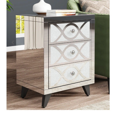Tribesigns Modern Mirrored Nightstand 3 Drawers Slanted Legs Black Interior