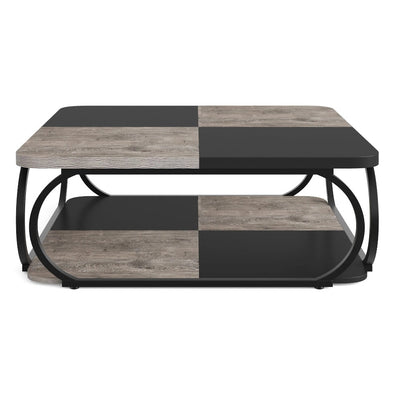 Tribesigns Square Coffee Table, 39" Central Cocktail, 2-Tier Shelves Abstract