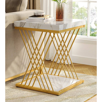 Tribesigns Square End Table 2-Tier Side Table Modern Bedside Table White / Gold