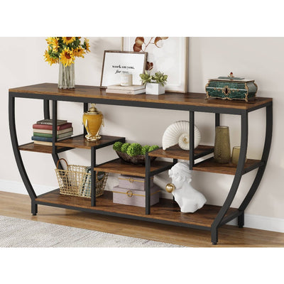 Tribesigns Industrial Console Table 70.9" Entryway Sofa Table w 7-Shelves Brown
