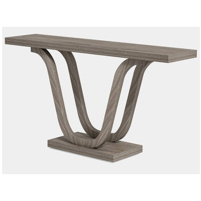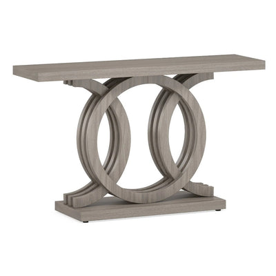Tribesigns Farmhouse Console Table, 55" x14" Geometric Circular Base, Gray Wood