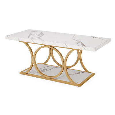 Tribesigns Rectangle Coffee Table, 47" x 24" x 19" w Faux Marble Top, READ