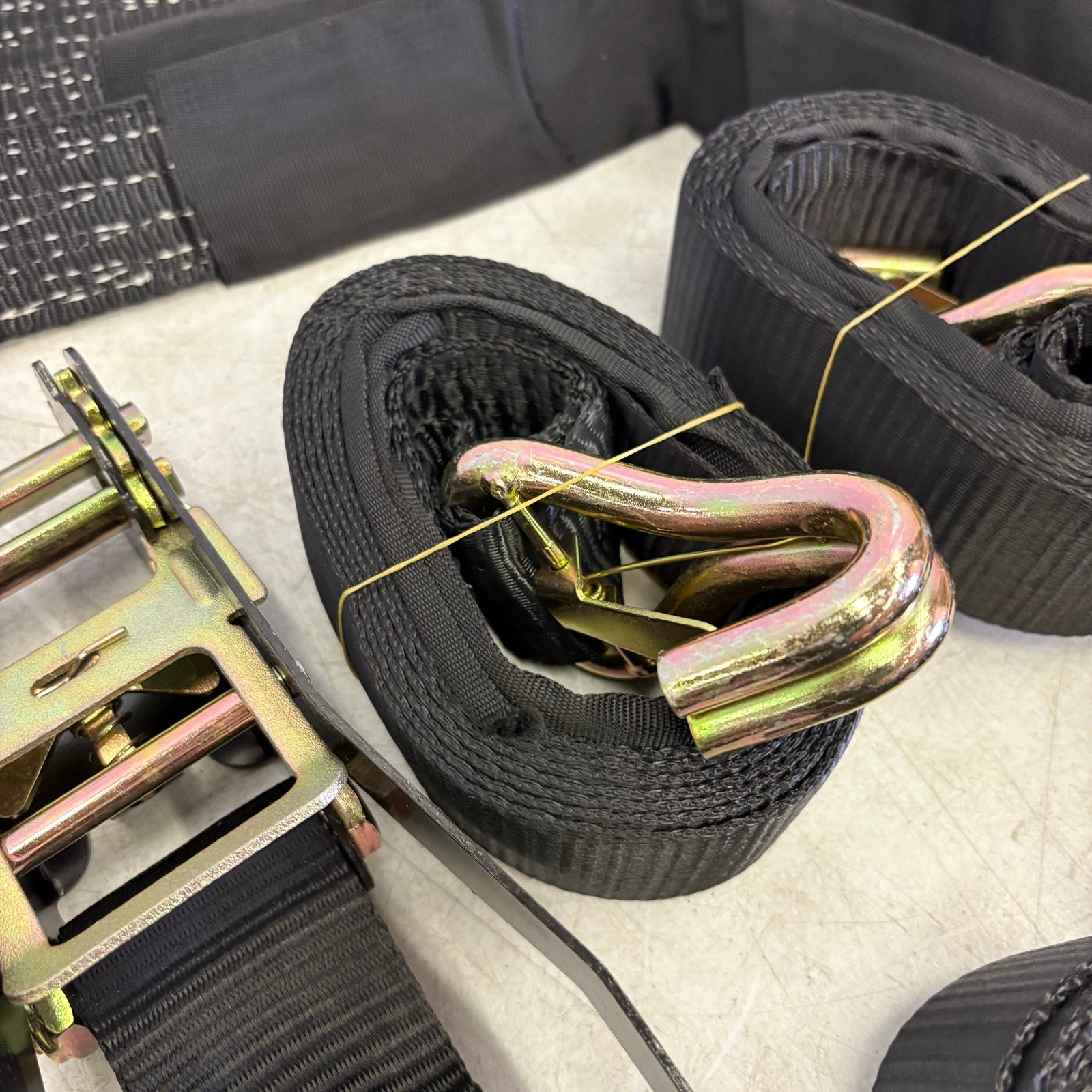 4 Pcs Auto Tie-Down Webbing Strap Belt Double J-Shaped Hook Belt Clip 4 Rings