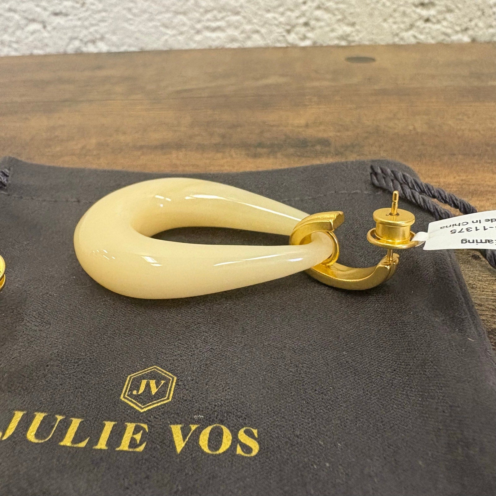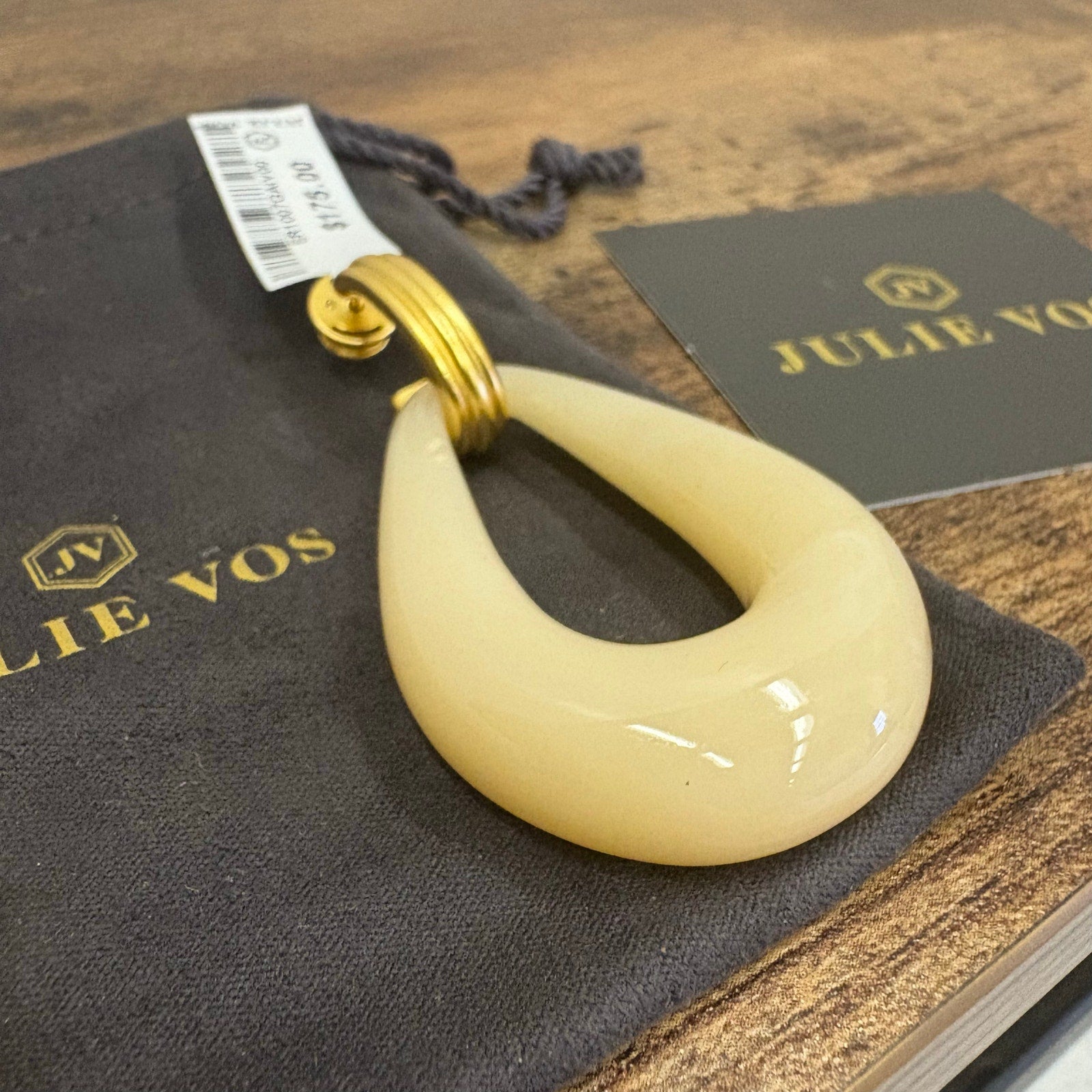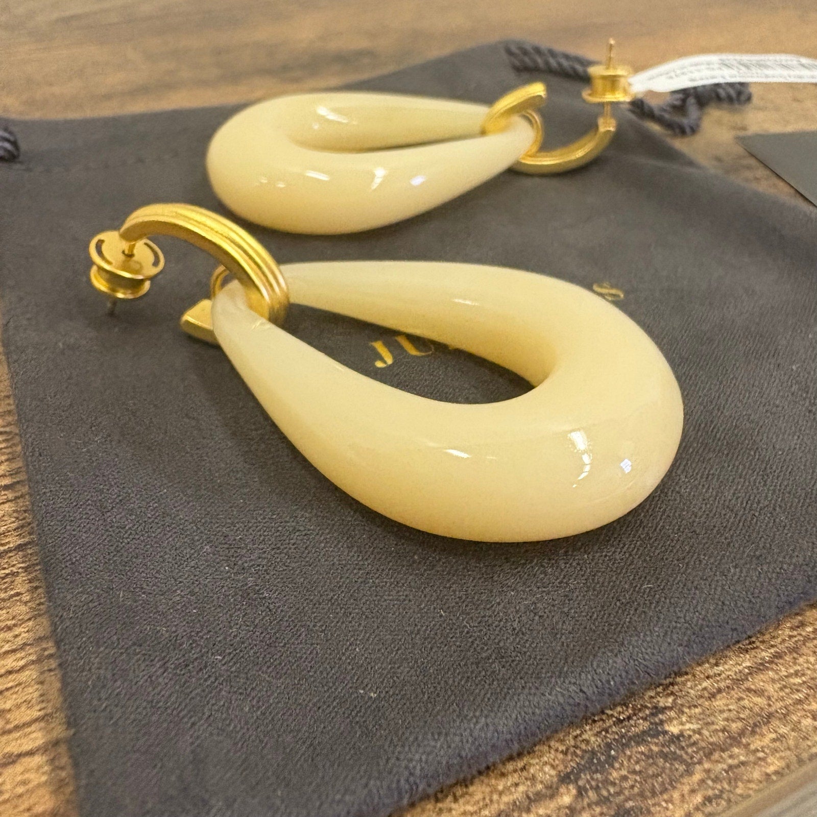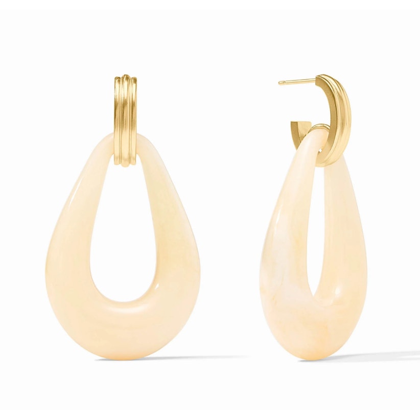 Julie Vos 2.4" Carnaby Doorknocker Earring, 24K Gold Plated - Ivory - Tan