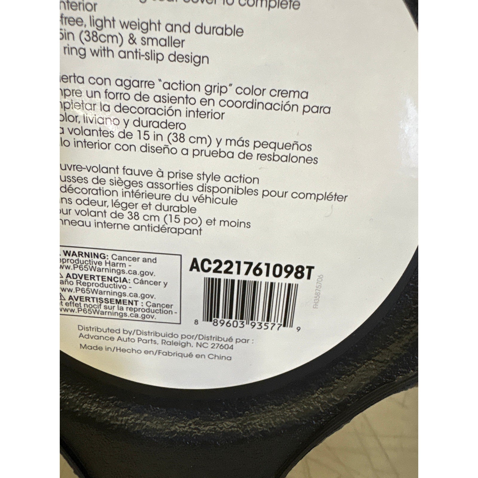 AutoCraft Action Grip Steering Wheel Cover Tan Faux Leather, Fits 14.5" - 15"