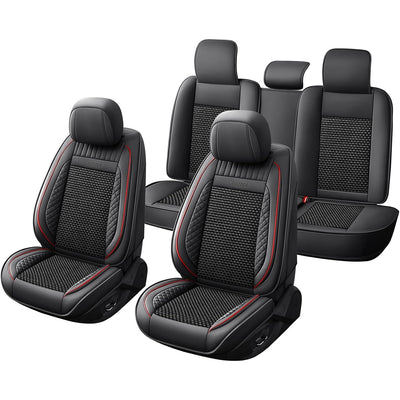 Chezope Full Set Leather Seat Covers Universal Fit for Most Vehicles - Black/Red