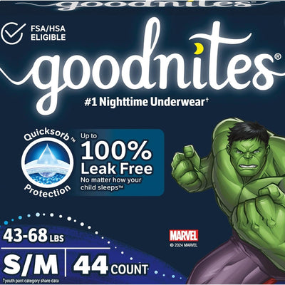 (2pk) Goodnites Boys' Nighttime Bedwetting Underwear, Size S/M (43-68 lbs) 44 Ct
