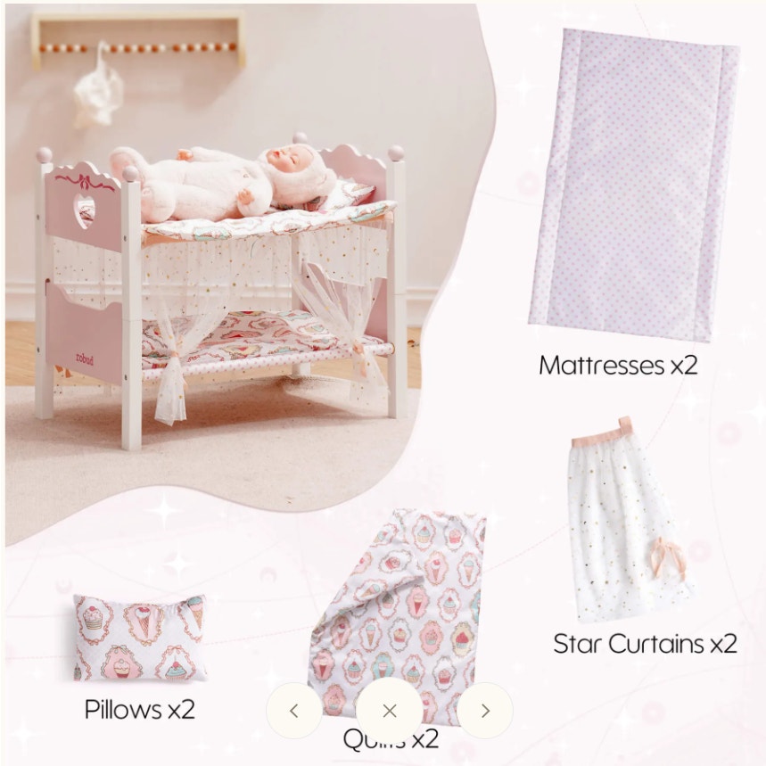 ROBUD Pink Princess Bunk Bed, Doll Bed Set w Curtain, 22.2"x18.7"x12.2" - WRP35