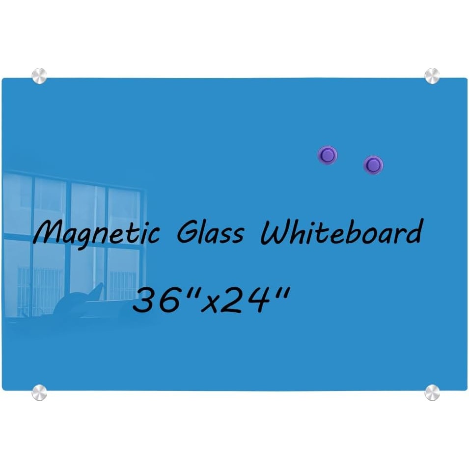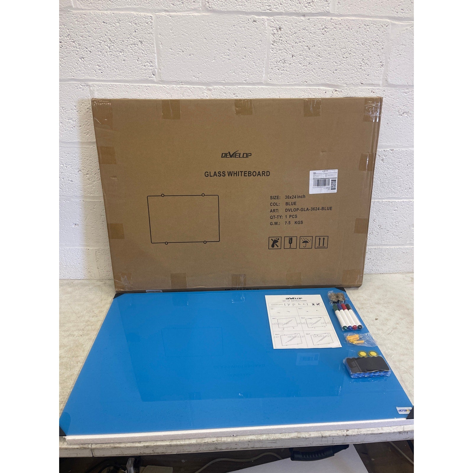 DEVELOP Magnetic Glass Whiteboard, Dry Erase Baard 36" x 24" Blue Frosted, w Markers