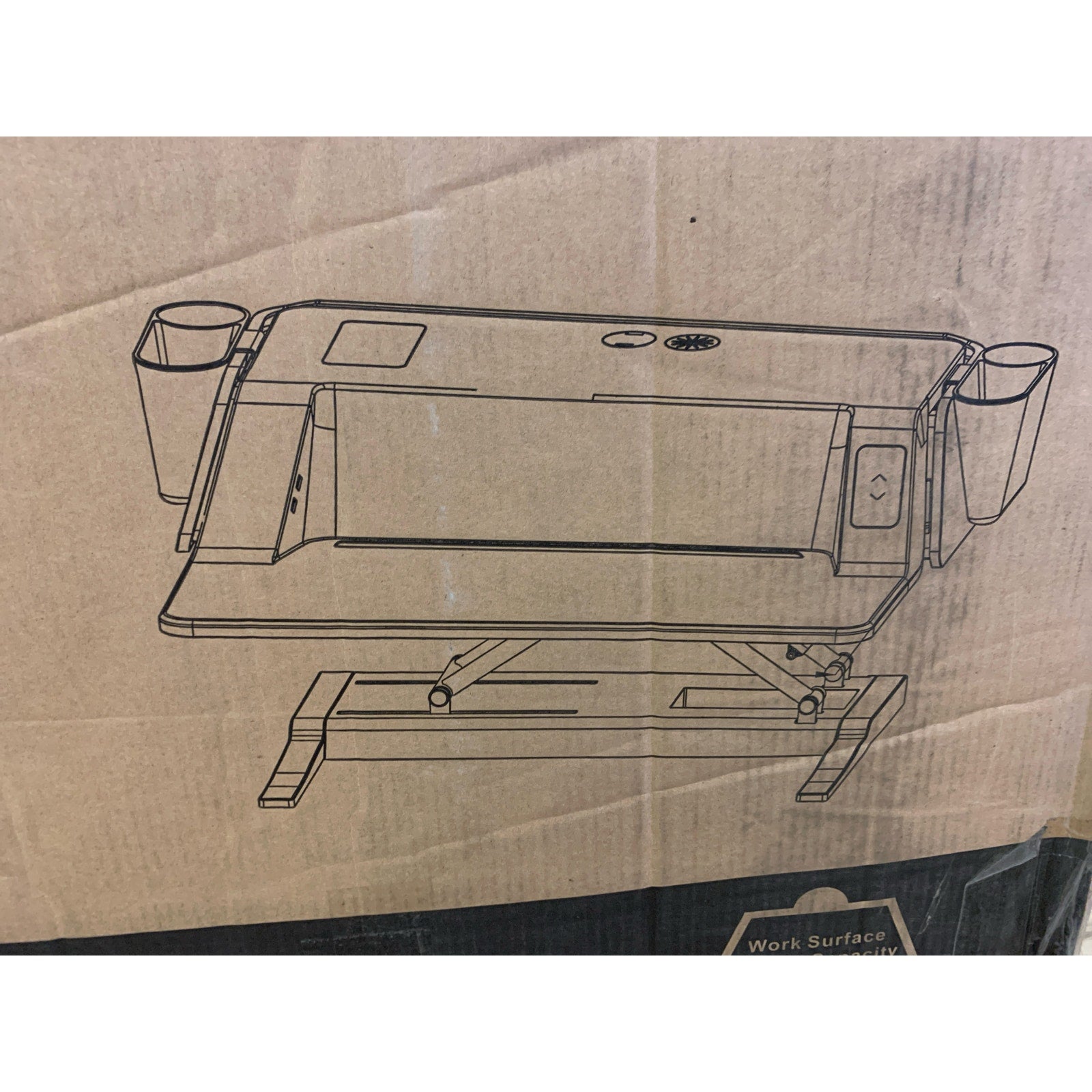 The work surface has a max weight capacity of 33 lbs, and the keyboard tray surface has a max of 22 lbs, but the combined max lift capacity is only 44 lbs for all items set on top of the unit; e.g. laptop, monitor(s) and monitor arm(s), any added accessories.