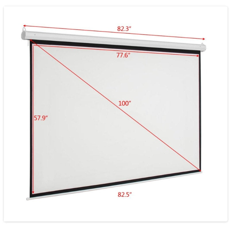 Leadzm 100" Home Movie Manual Projection Screen Pull Down Projector - White