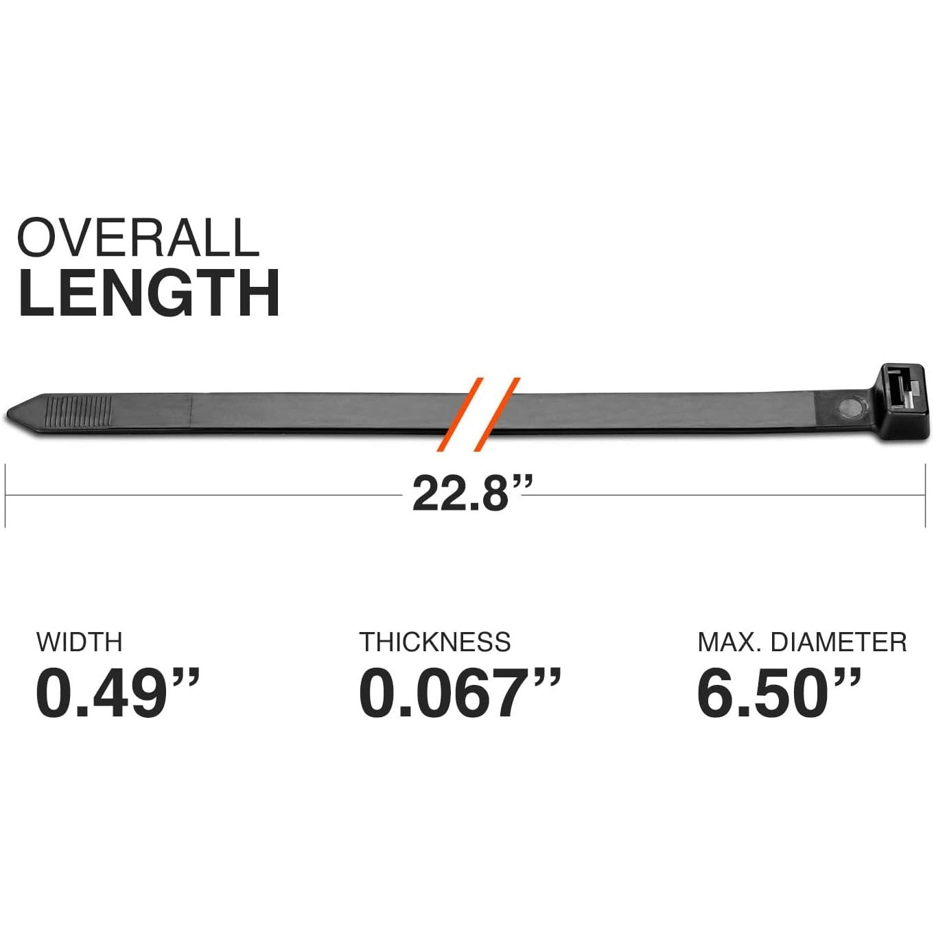 TR Industrial Ultra Heavy Duty Multi-Purpose UV Cable Ties, 22.8", 25pk - Black
