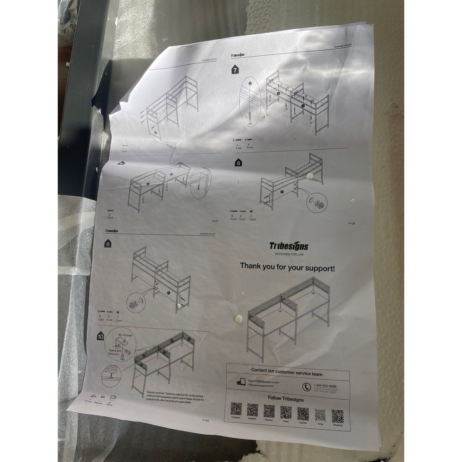 Structural Stability: This double desk for 2 people features three metal supports at the bottom, creating a stable structure. The desktop is made from high-quality MDF, and it comes with foot pads to ensure stability even on carpeted floors