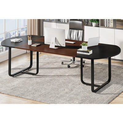 Tribesigns 70.86" Oval Executive Desk Modern Computer Table, Brown & Black