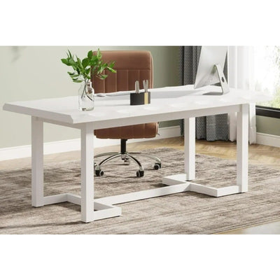 Tribesigns 63" Office Desk Executive Table w Solid Wood Legs & Desktop White