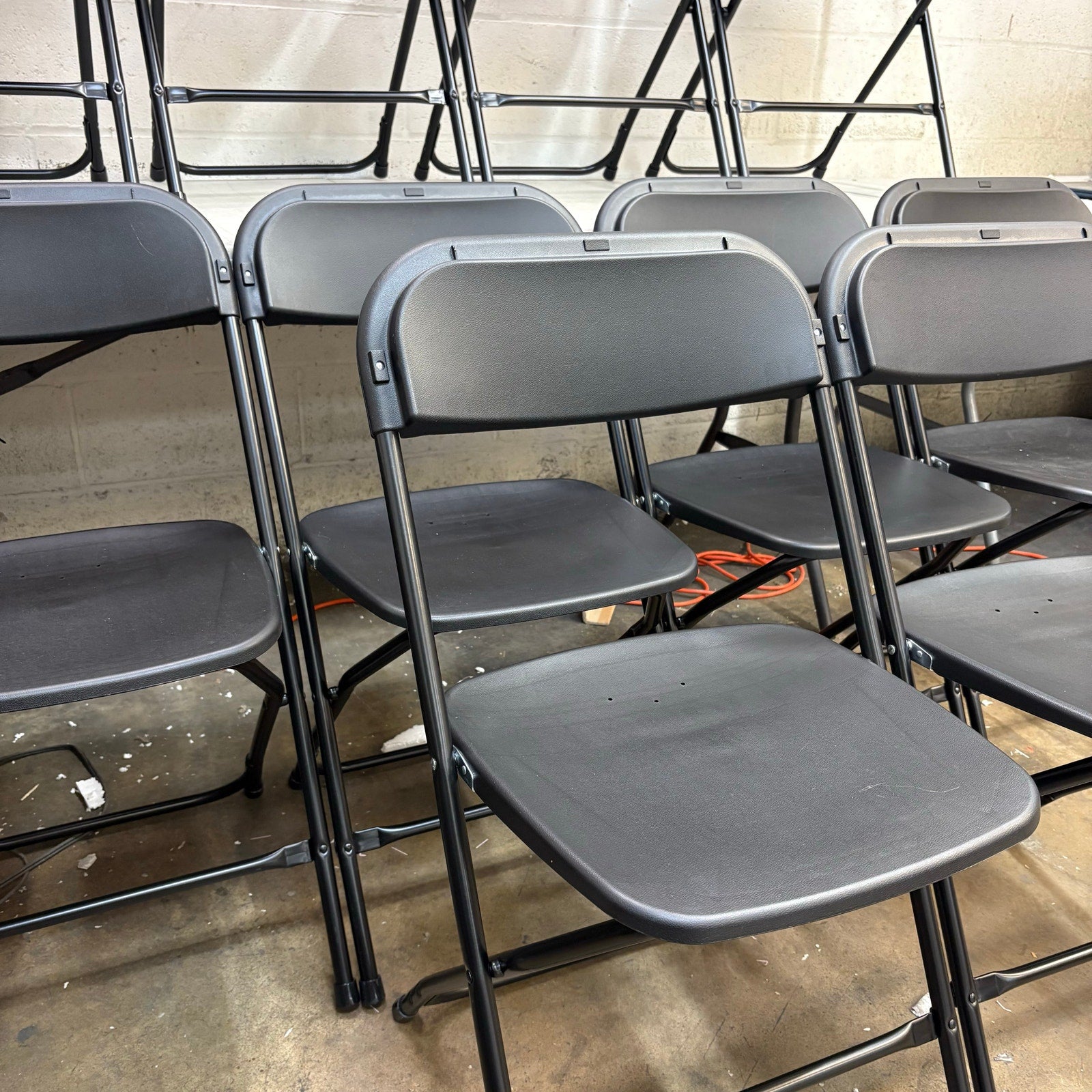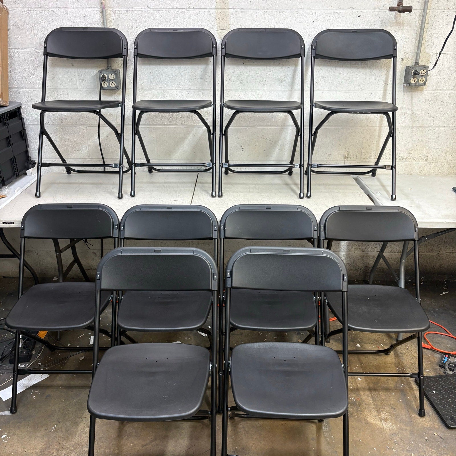 10 pack - Black Plastic Folding Chairs, Indoor/Outdoor Seats with Steel Frame