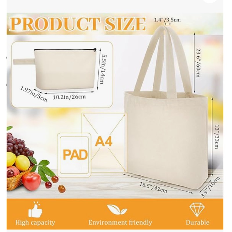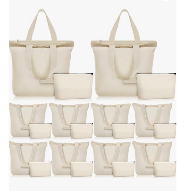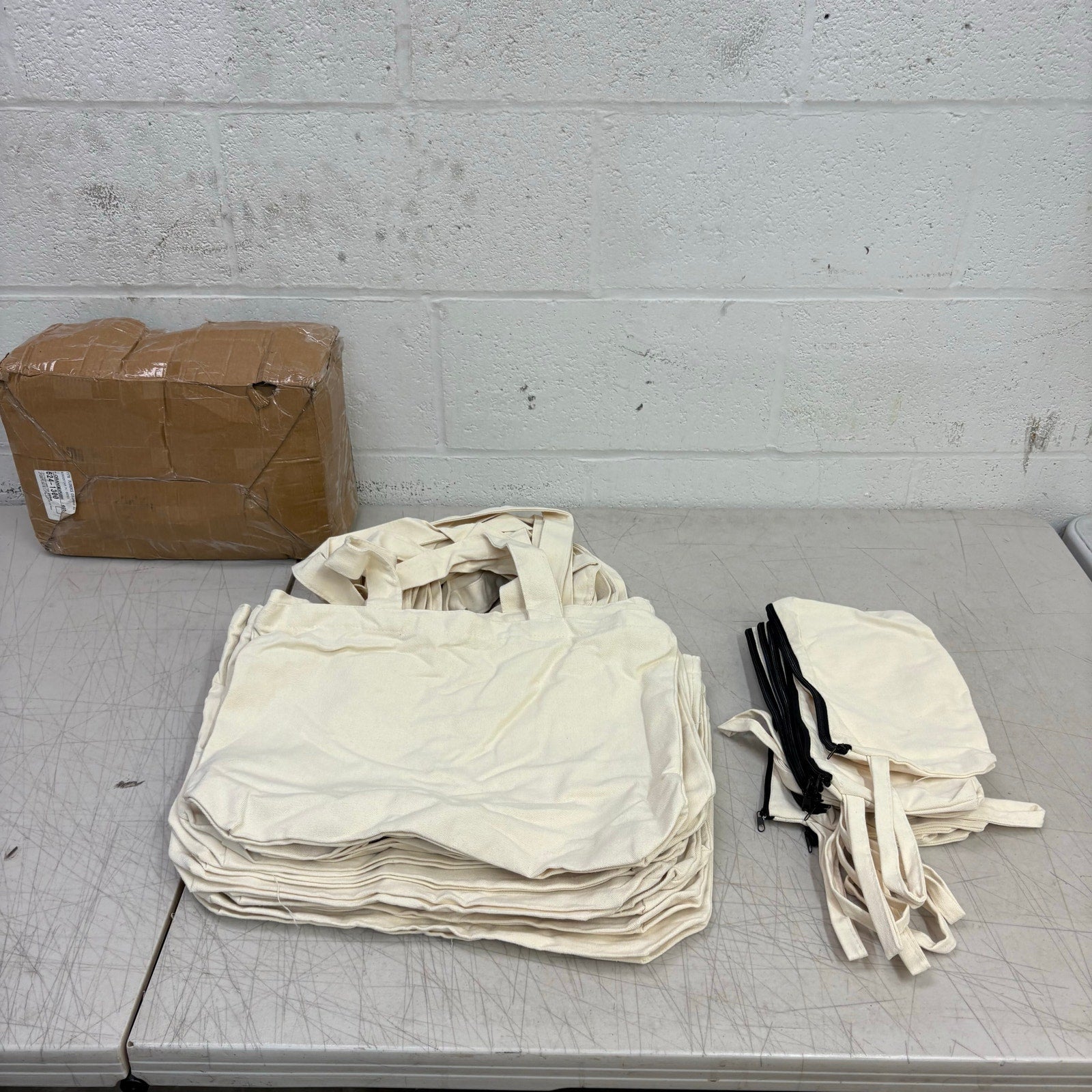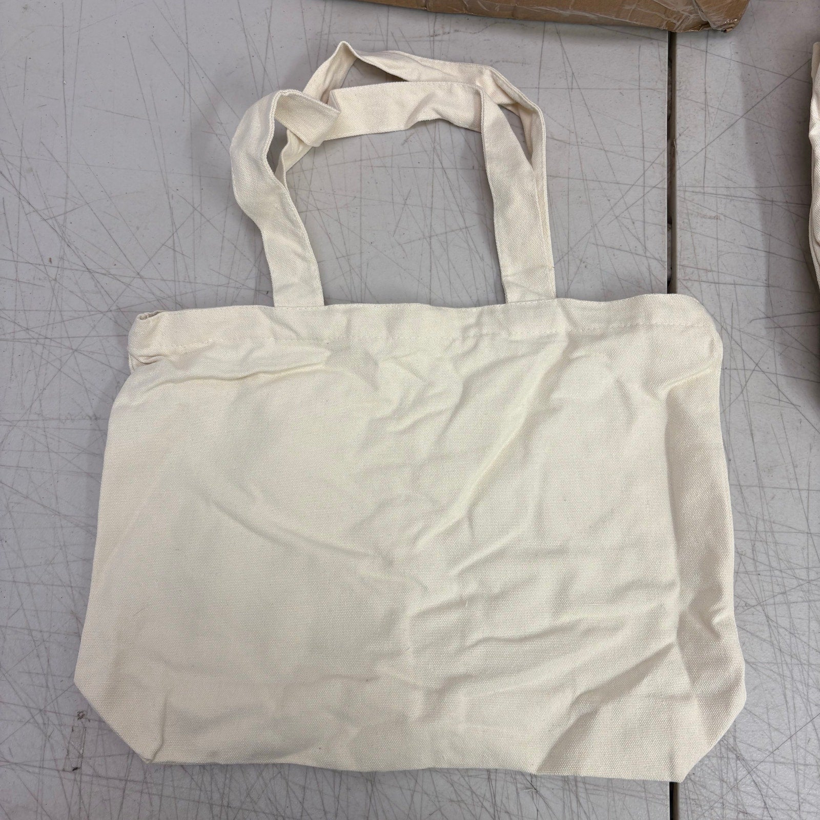 20-Piece Silkfly Tote Bag with Zipper & Handles Cotton Canvas Bag Reusable Beige