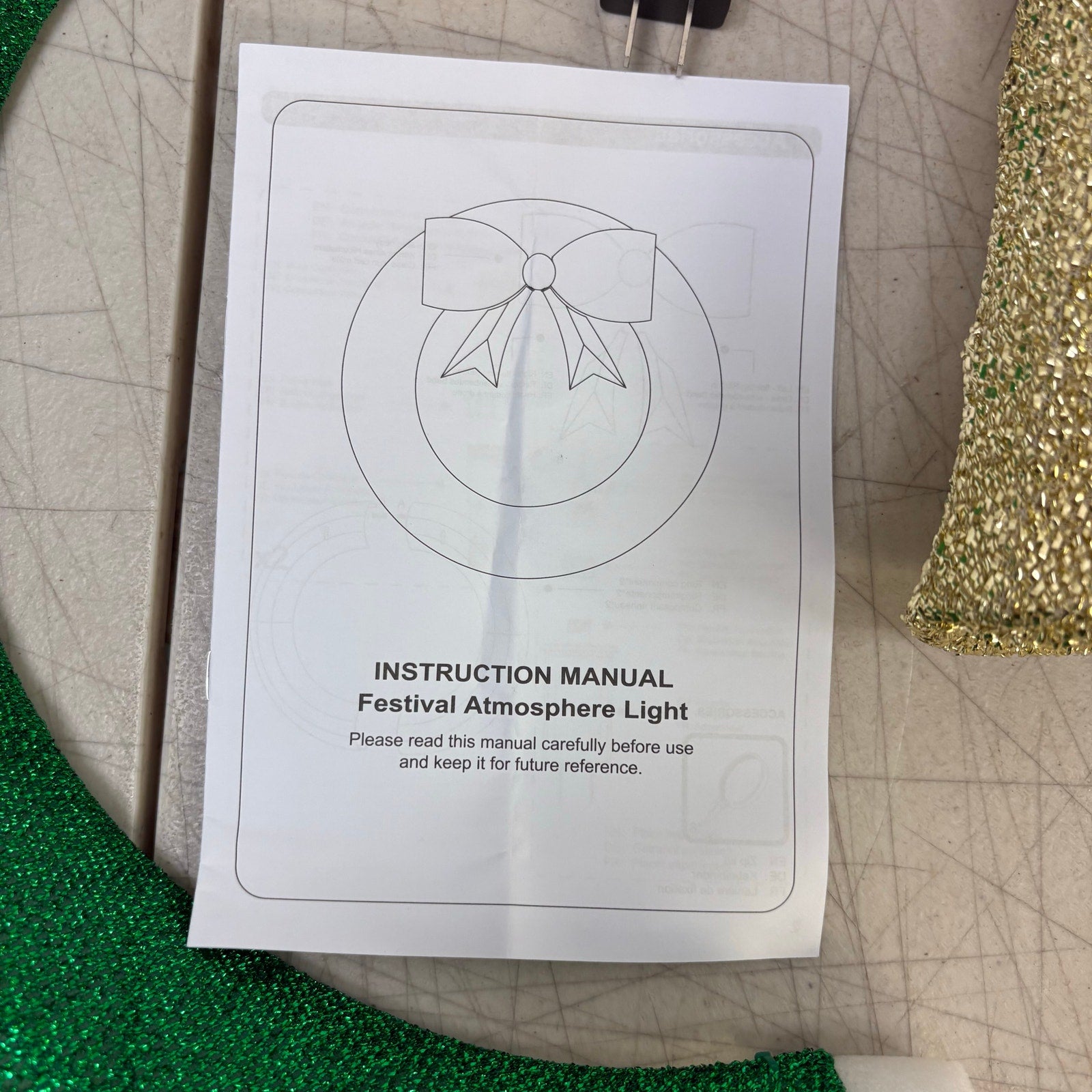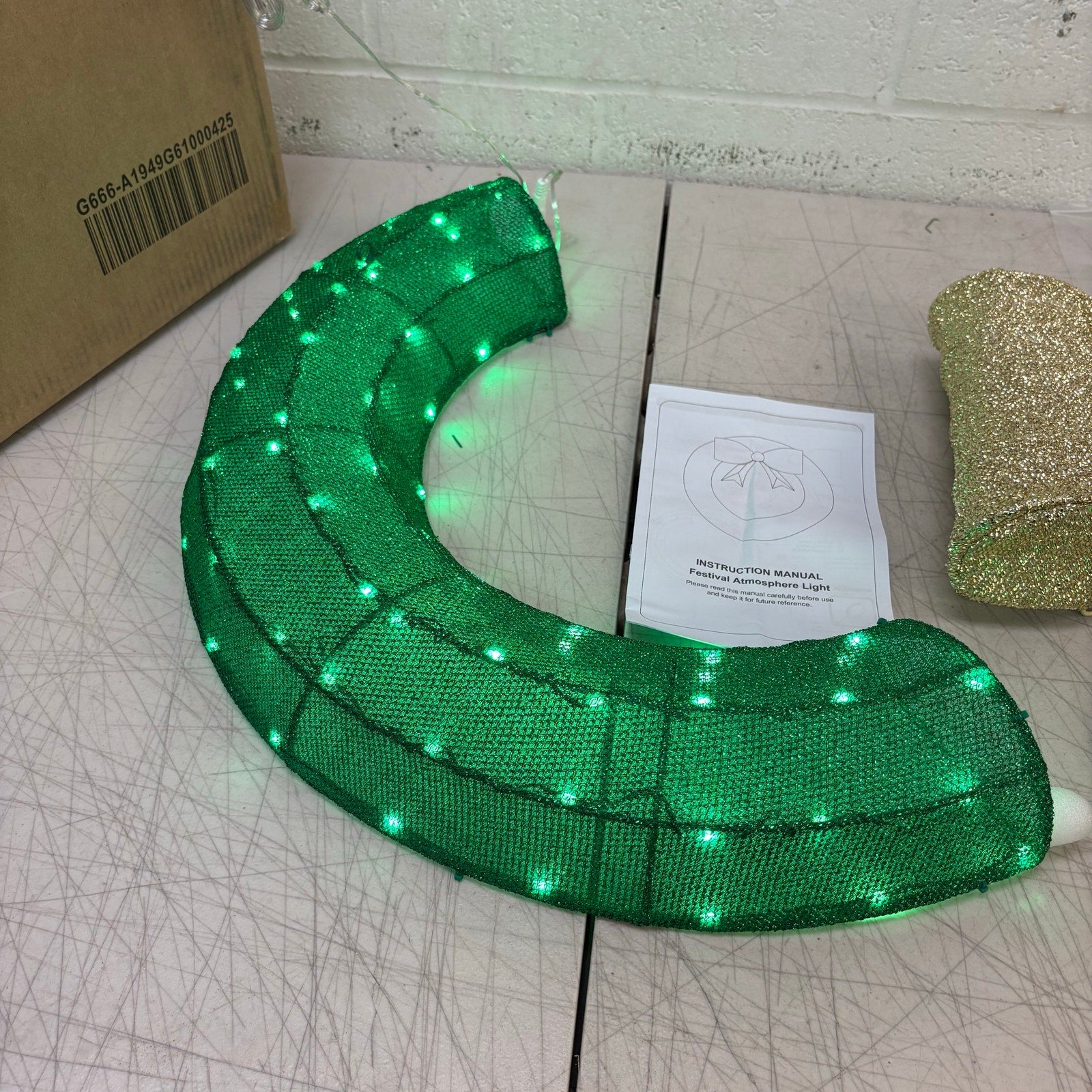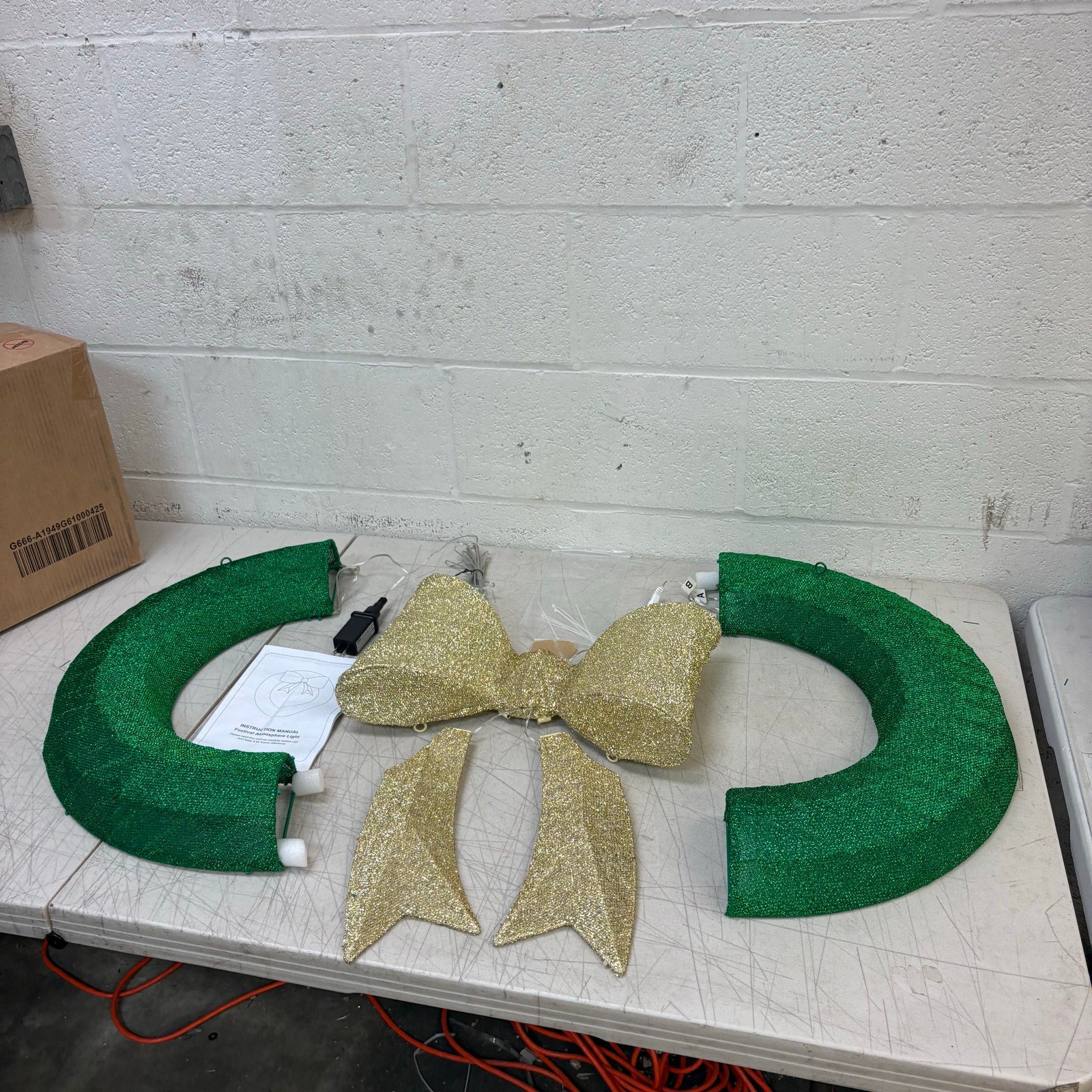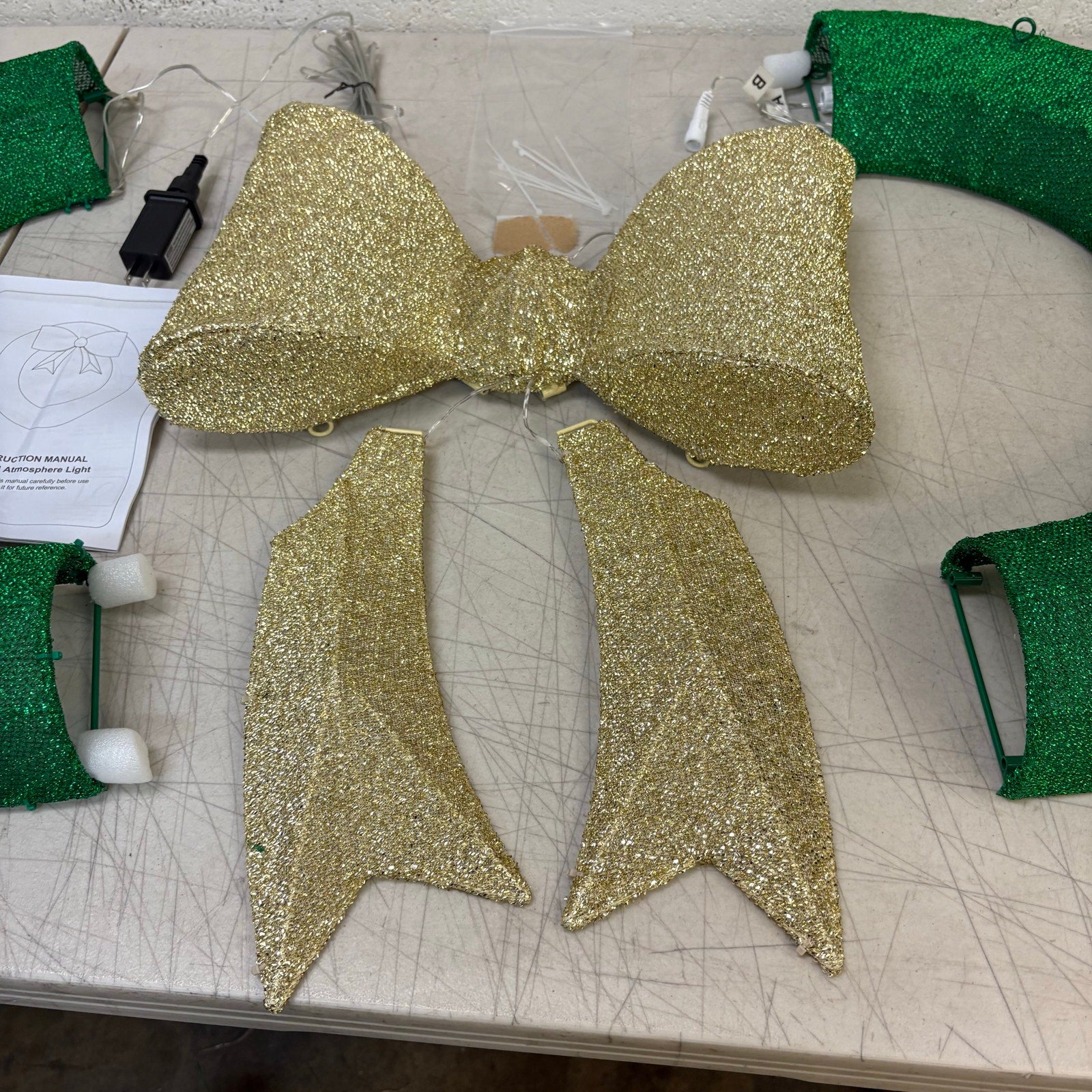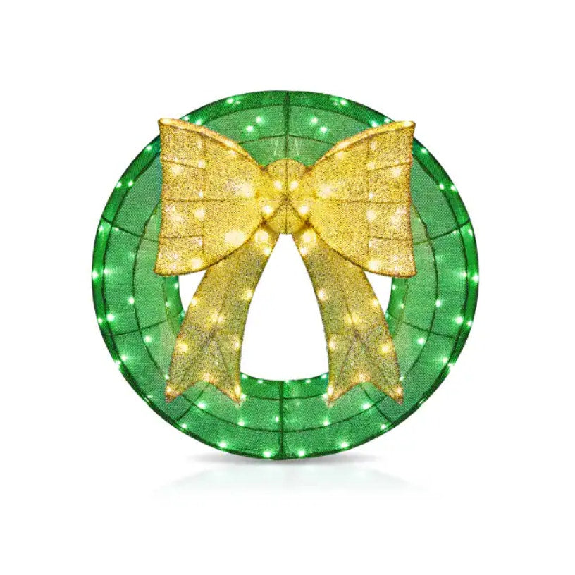 24in Pre Lit Christmas Wreath Garland with Lights, Golden Bows Ornaments