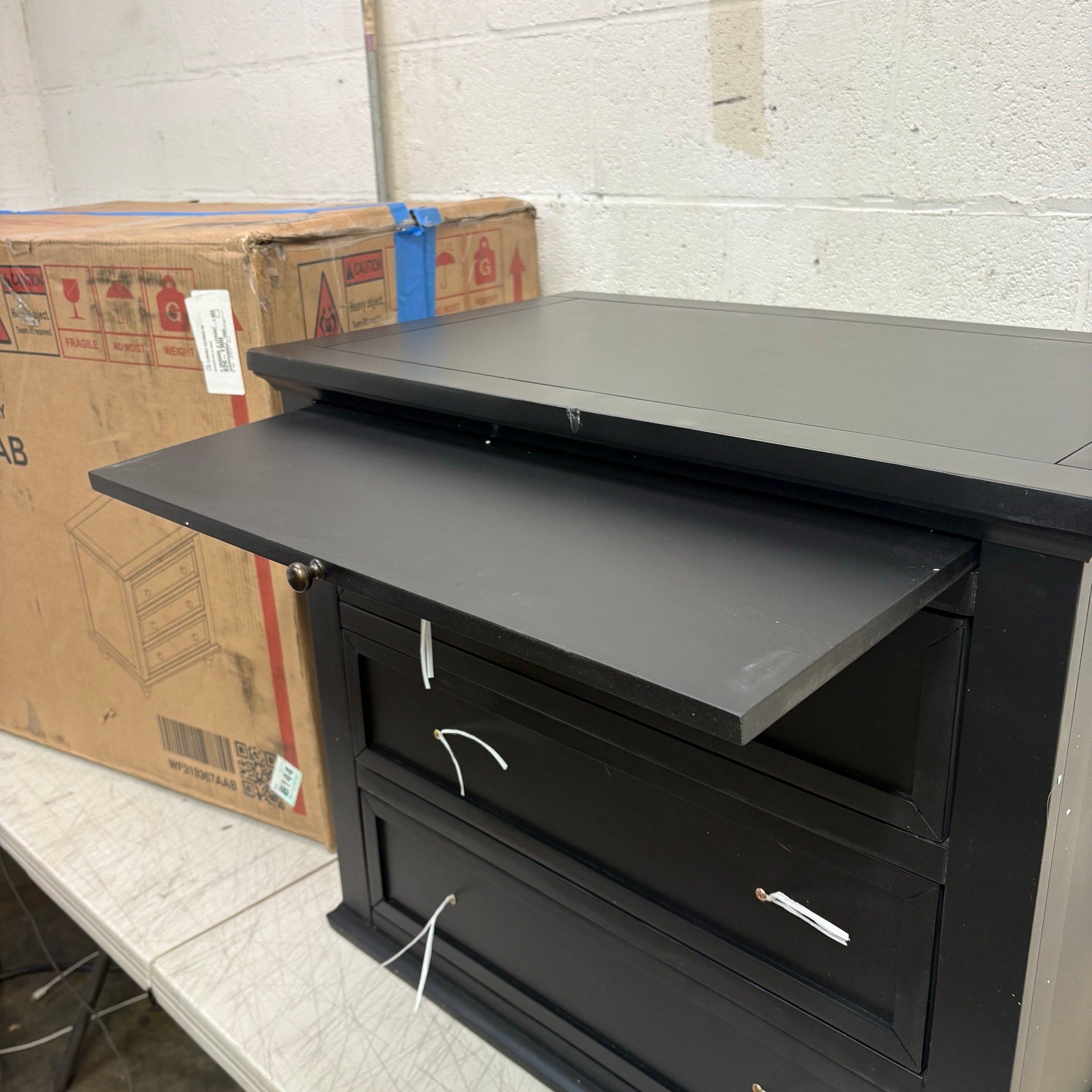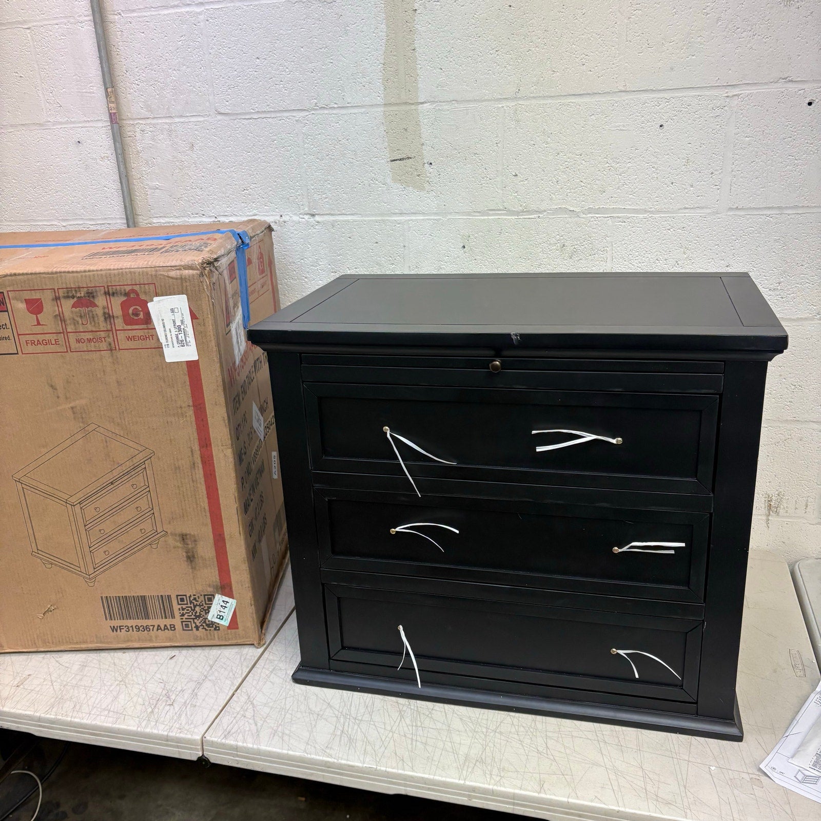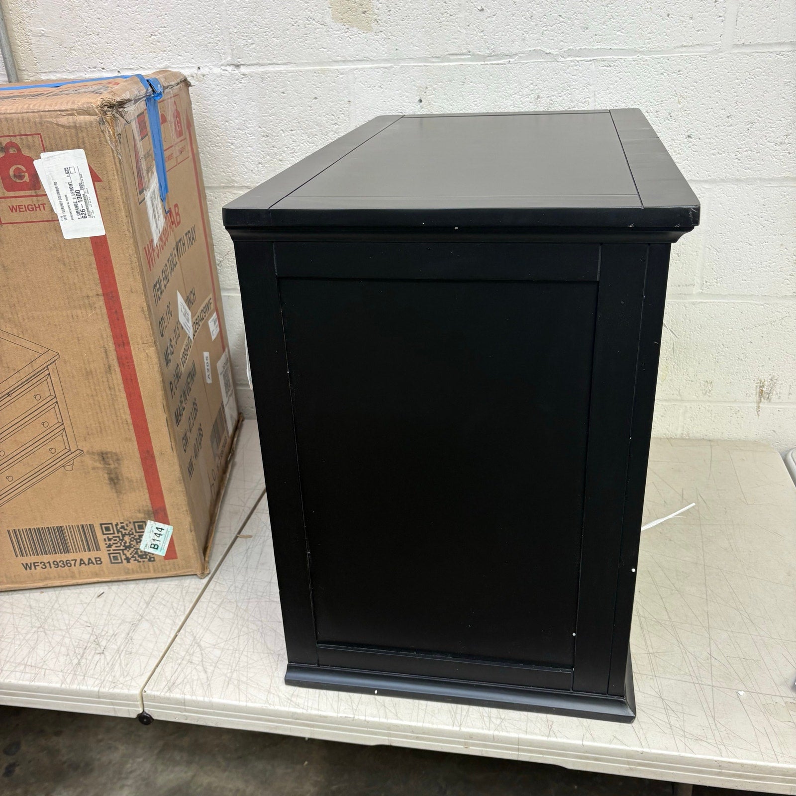 3-Drawer Wood Storage Cabinet w Pull-Out Tray, 16.9" x 28" x 28.1" Black, DENTED