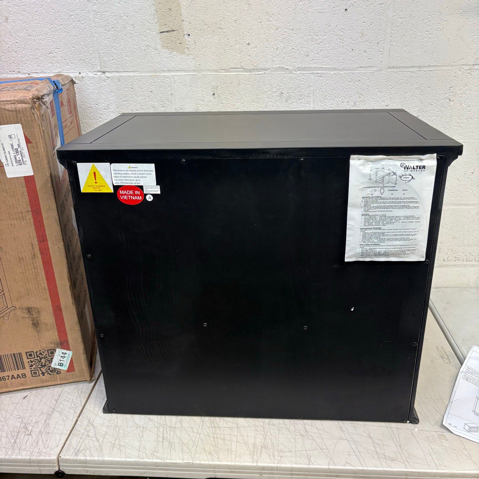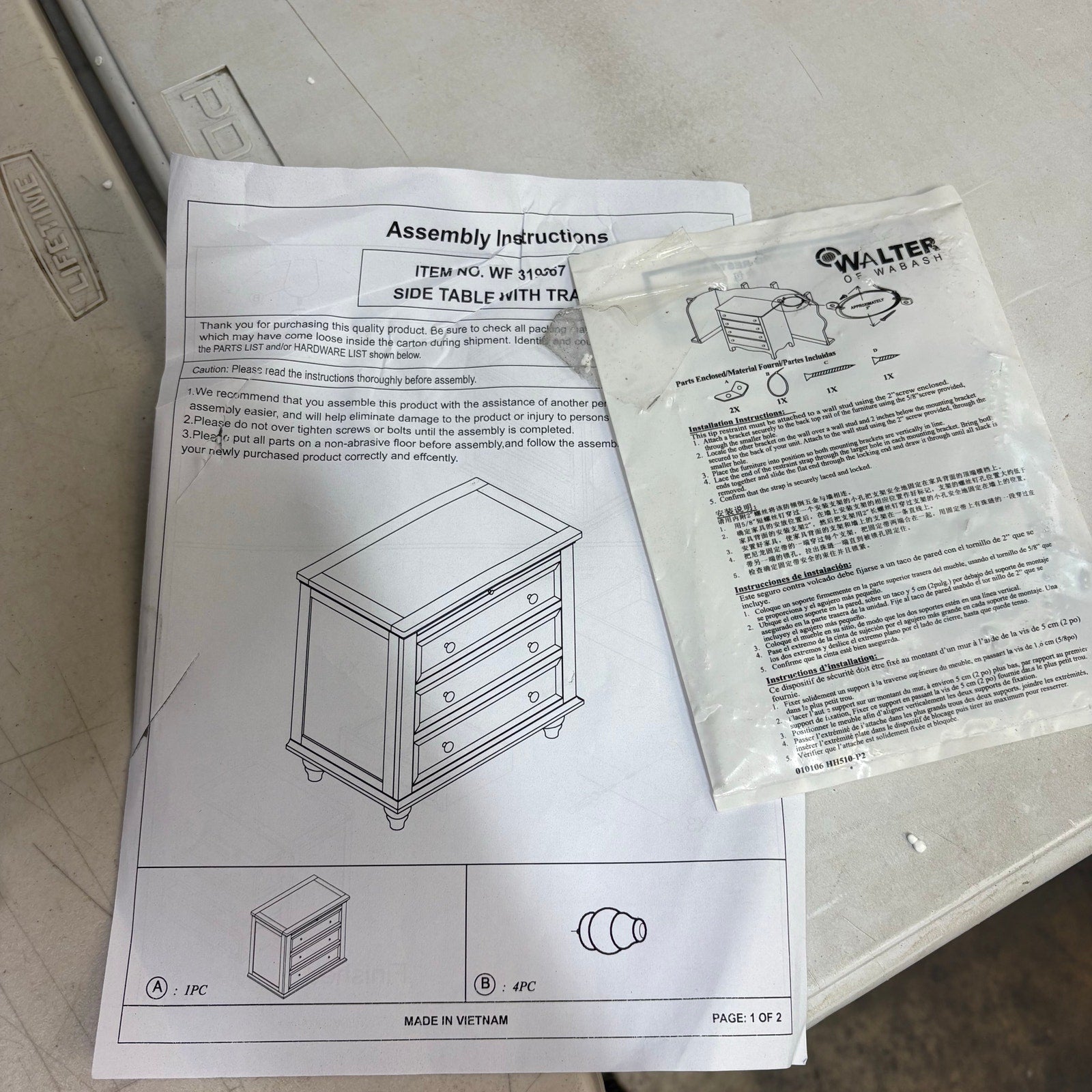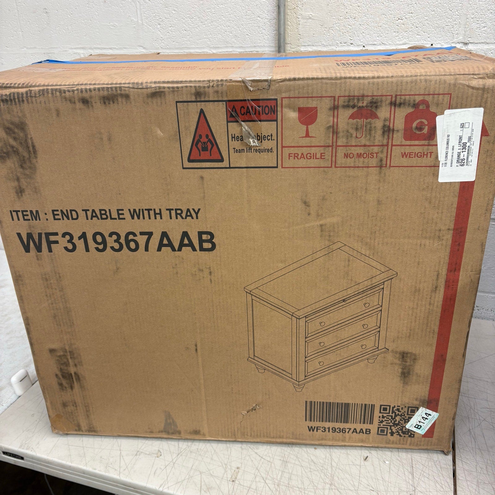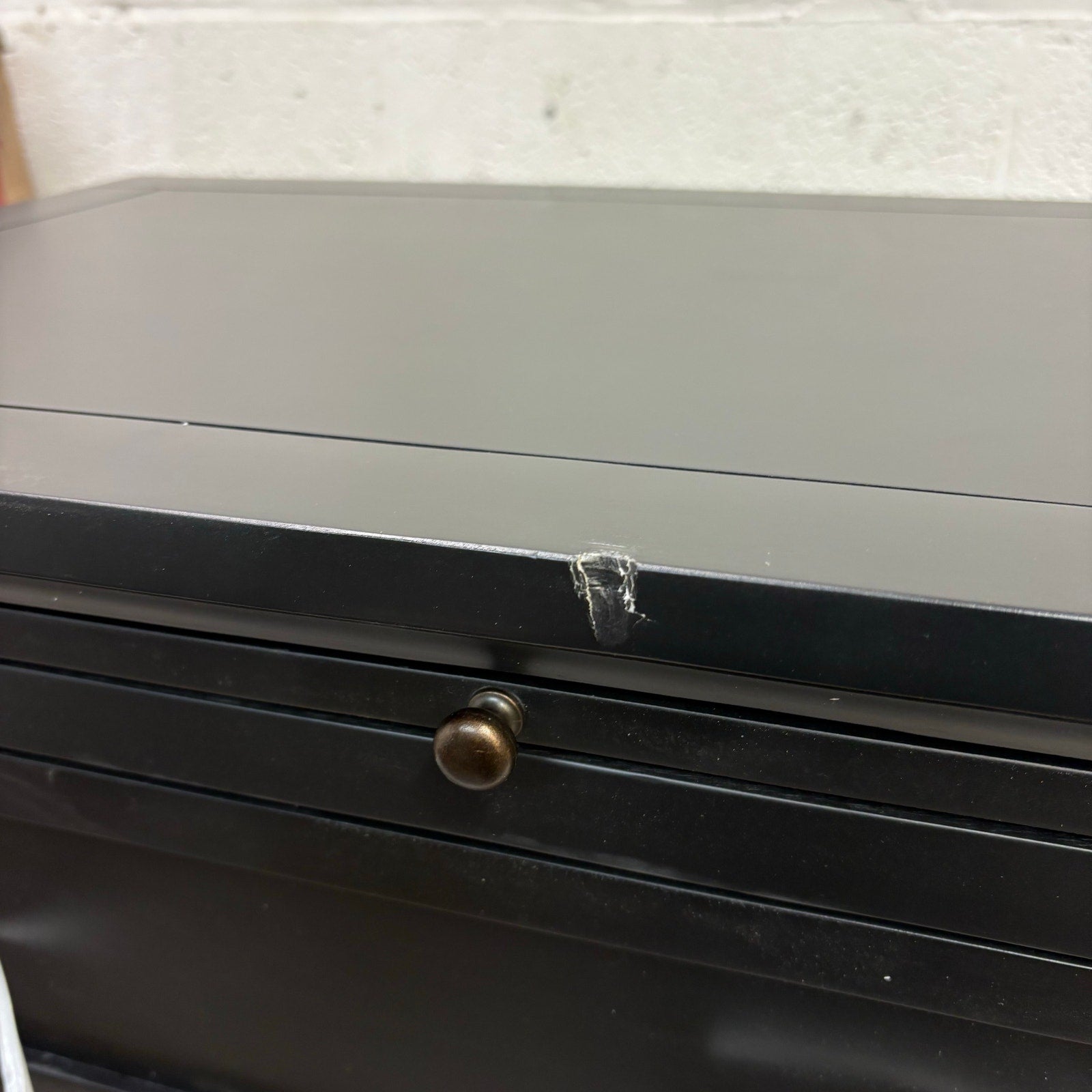 3-Drawer Wood Storage Cabinet w Pull-Out Tray, 16.9" x 28" x 28.1" Black, DENTED