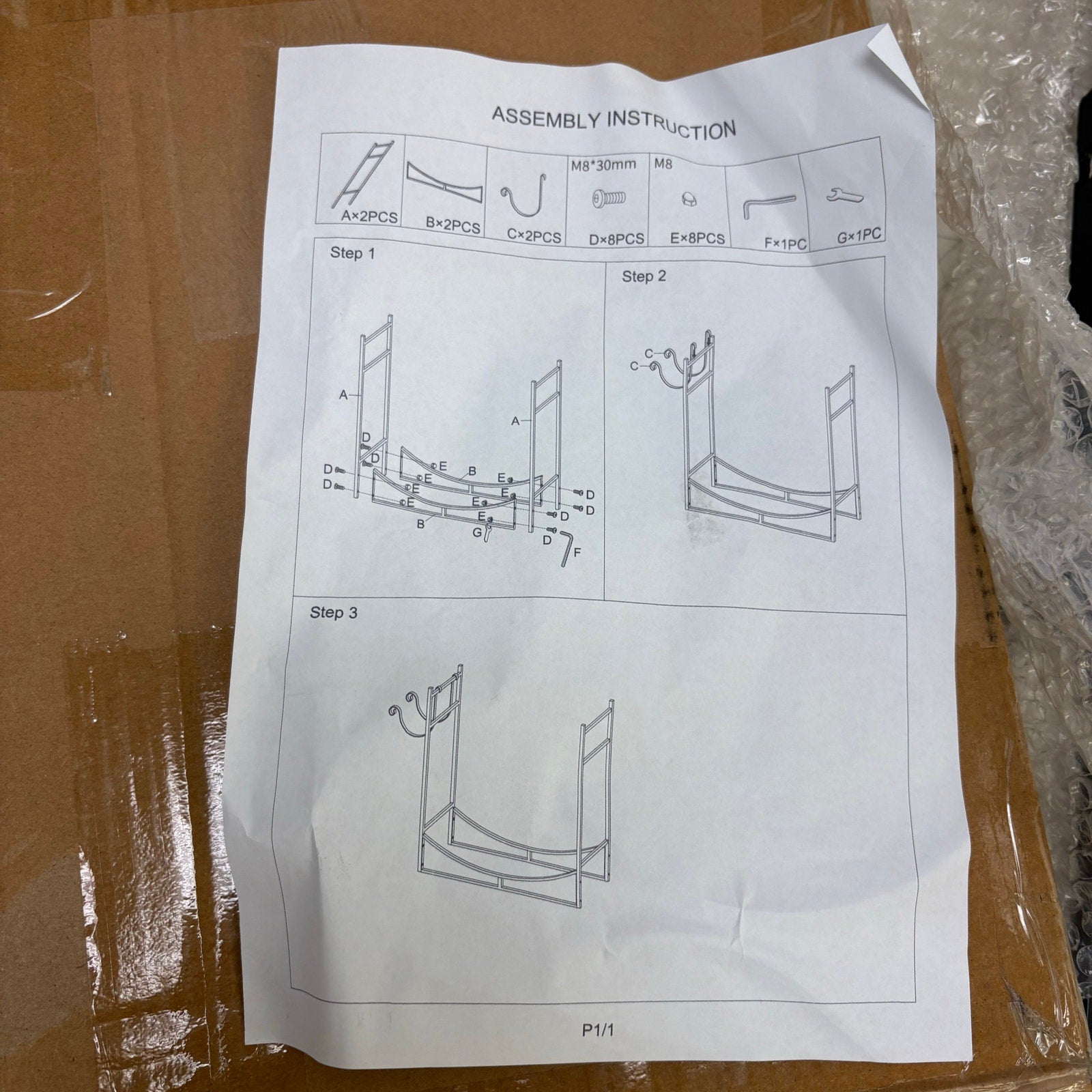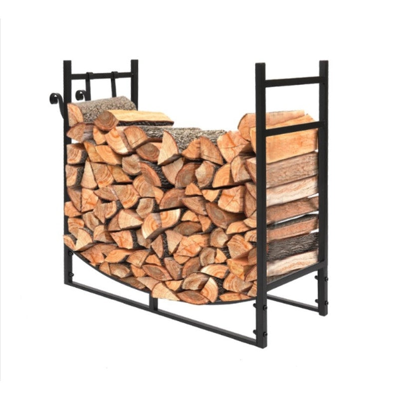 33" Firewood Log Rack, Wrought Iron Wood Lumber Storage Holder for Fireplace