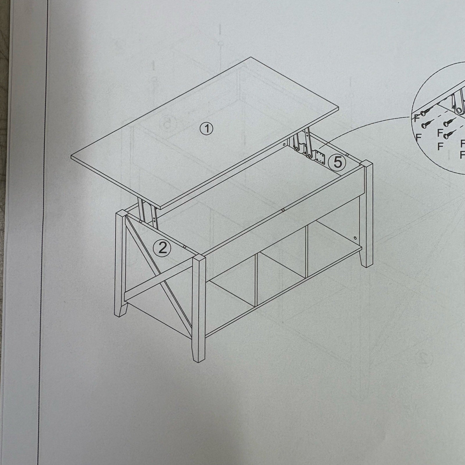 38" x 20" x 19" Brown Coffee Table with Storage, Top Opens Up, 3 Section Storage