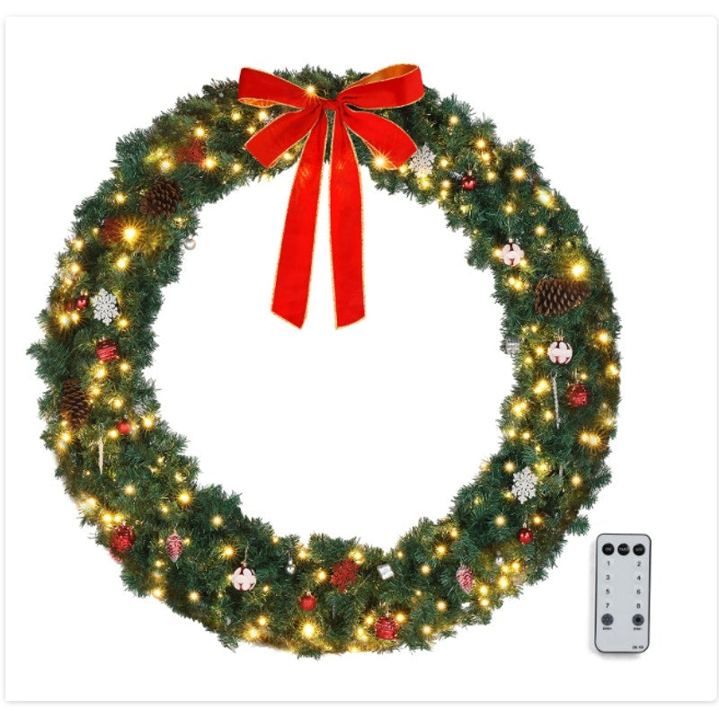 48in Outdoor Christmas Wreath PVC Bow Decoration 150 Lights LED Holidays