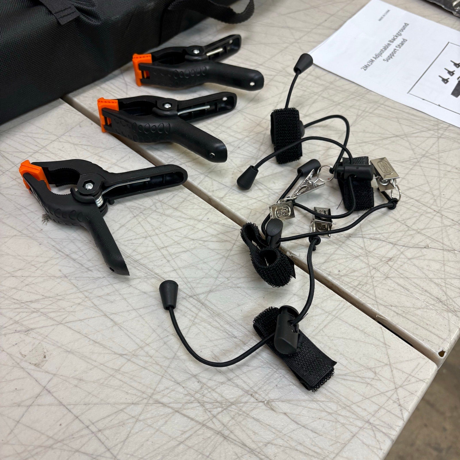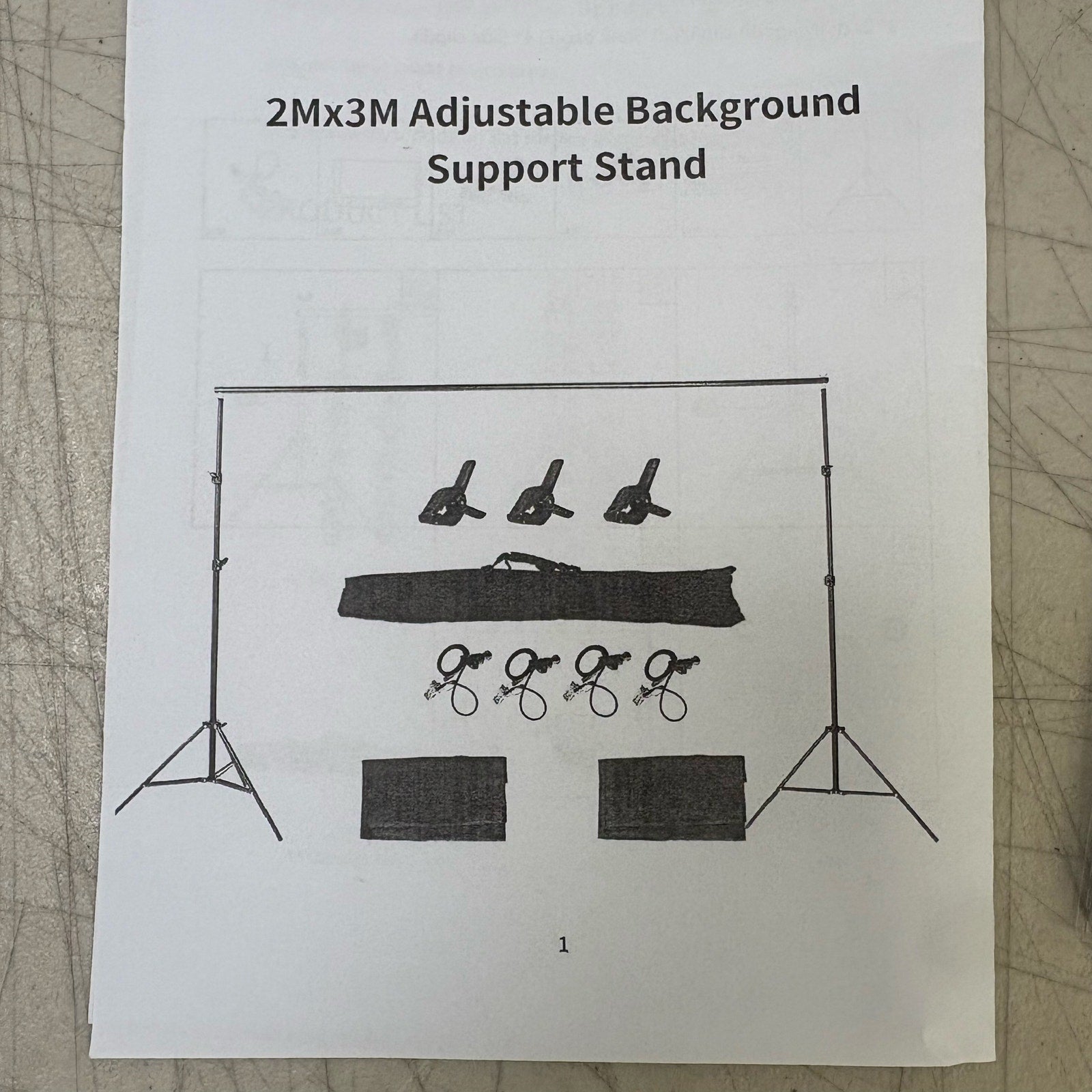 6.5ftx10ft Adjustable Background Support Stand w Carrying Bag, Sand Bags & Clips