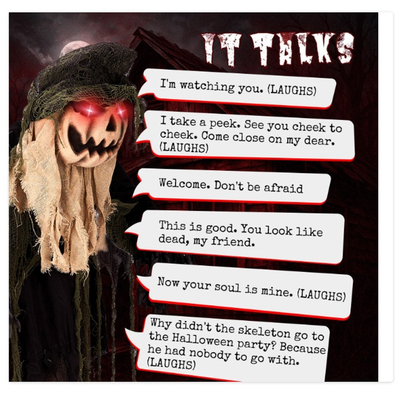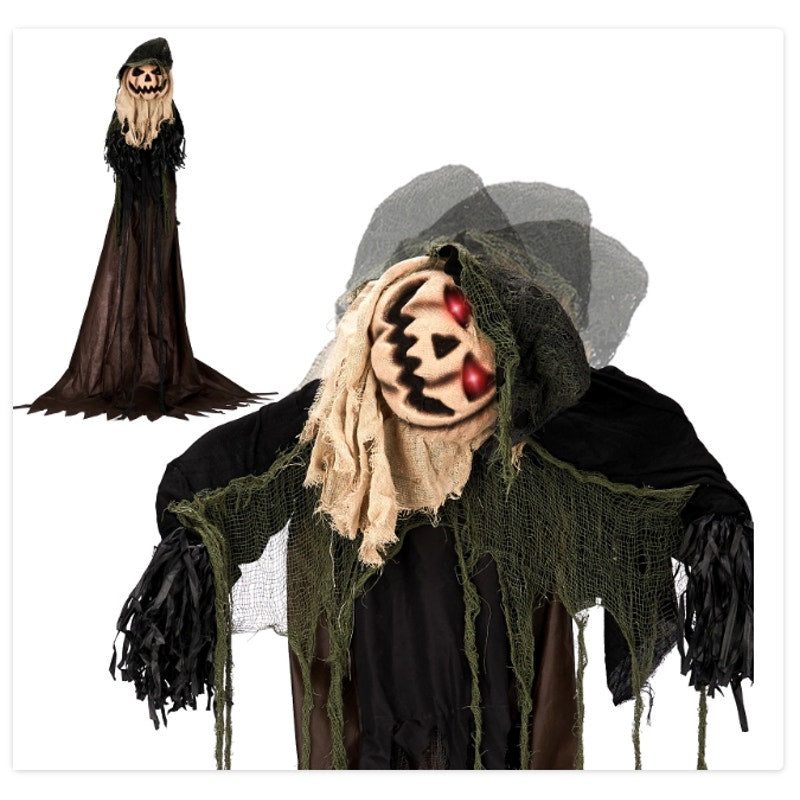 ☠ Bring the spirit of the high seas to your Halloween celebration with the Zimtown 6-foot animatronic pumpkin man ! This life-size titled pumpkin man is the ultimate addition to your spooky setup, designed to captivate and entertain guests of all ages. Standing tall at nearly 6 feet, this man comes alive with sound-activated movements, creating an immersive and unforgettable experience.