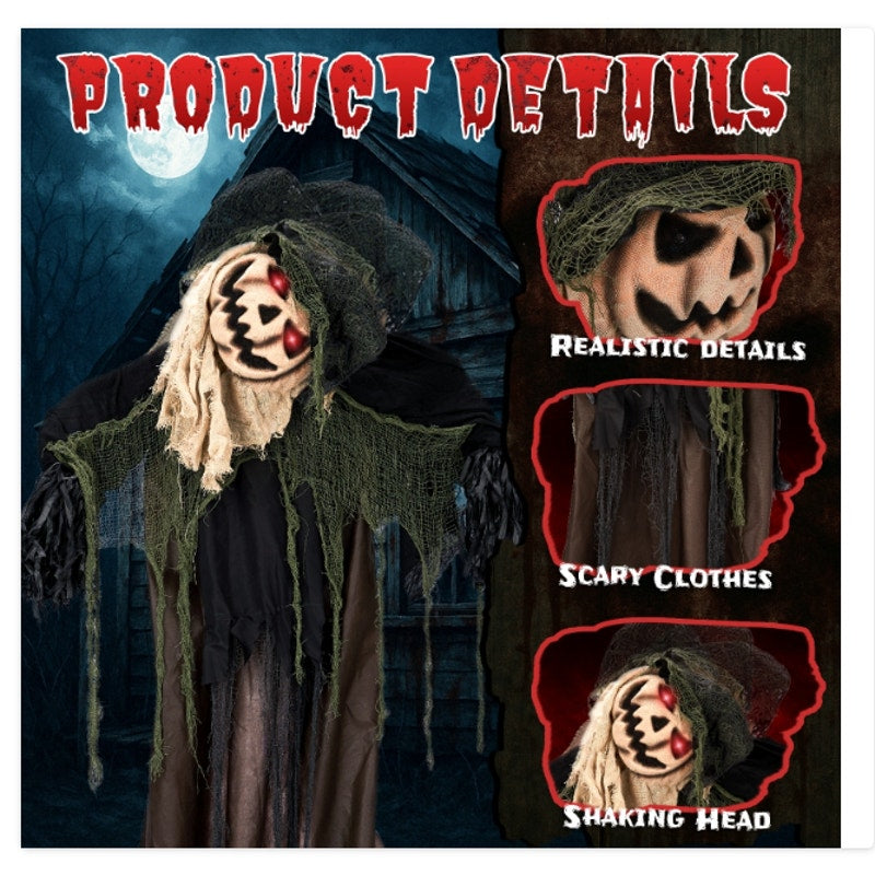 ☠ Sound-Activated Movements: The pumpkin man reacts to sounds, moving his head and arms in a lifelike manner, adding an interactive element to your decor.